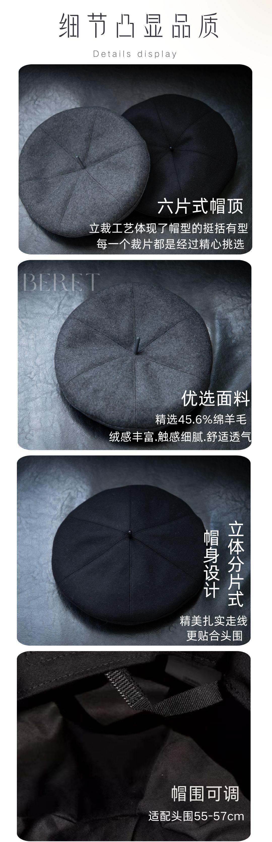 Boina de Lana Otoño 2025 Nueva Sombrero para Circunferencia de Cabeza Grande para Mujer Sombrero de Pintor Británico Retro Versátil Hace que la Cara se Vea Más Pequeña