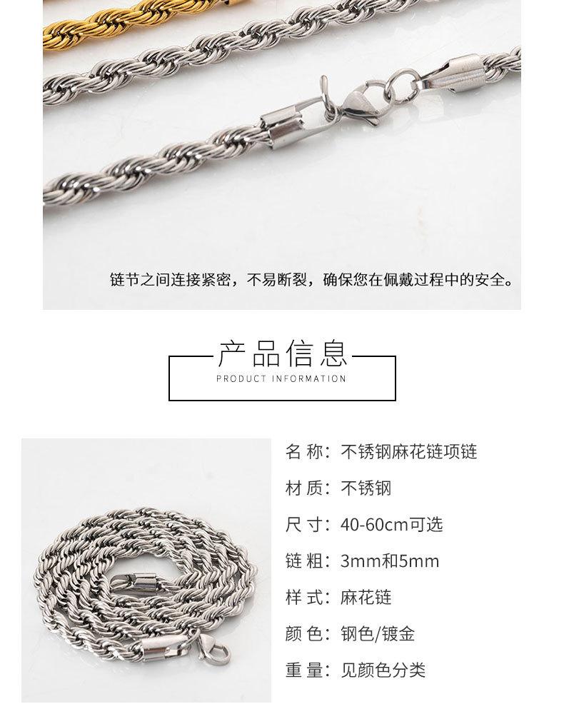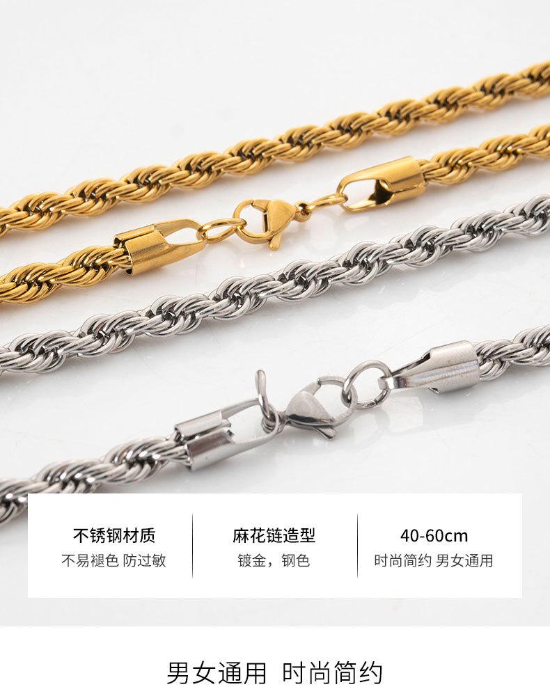 Cadena torcida, collar de acero de titanio para hombres europeos y americanos, cadena de acero inoxidable de tendencia hip-hop, cadena de cuerda torcida de comercio exterior con cadena al por mayor