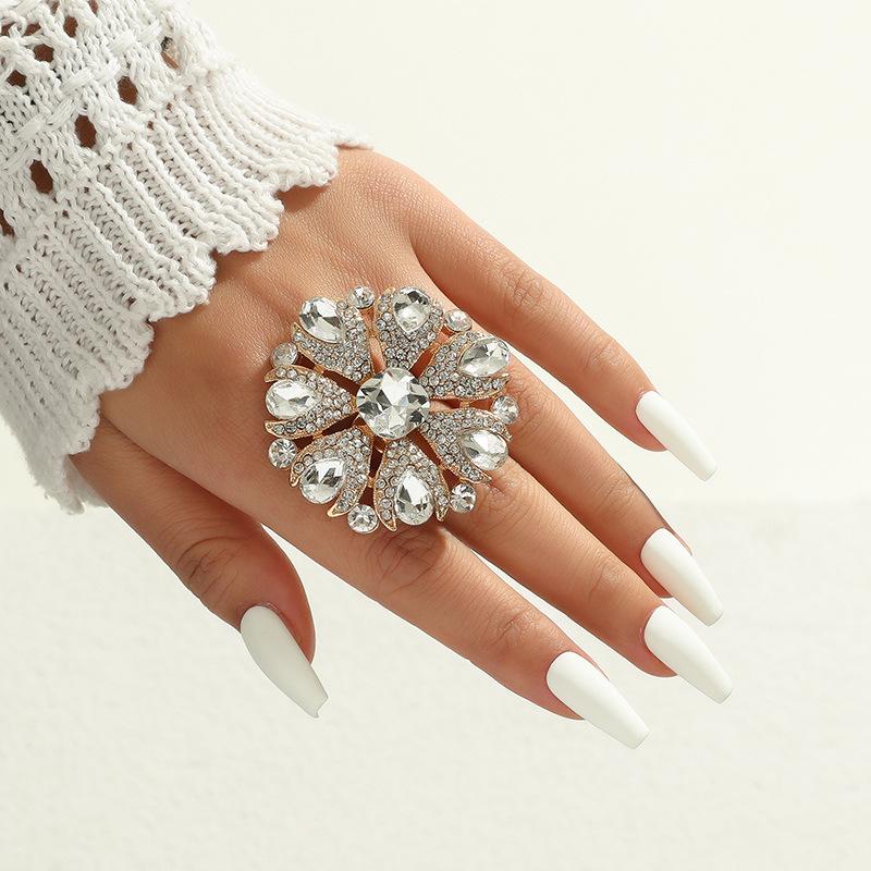 Anillo de flores con personalidad, de moda, para mujer, con diamantes de cerámica y flores, sencillo, para puestos callejeros, en AliExpress.