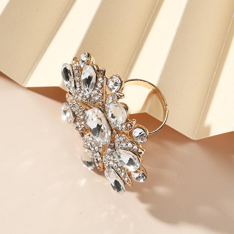 Pulsera abierta de diamantes de moda europea y americana, anillo con cadena integrada, cadena de garra de diamantes completa, cadena para el dorso de la mano, joyería nupcial al por mayor