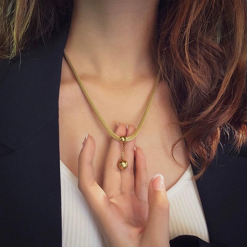 Collar de Acero de Titanio de Lujo Accesible con Diseño Nicho de Estilo Frío de Bola Redonda a la Moda Cadena para Clavícula Versátil Pulsera que No se Desvanece