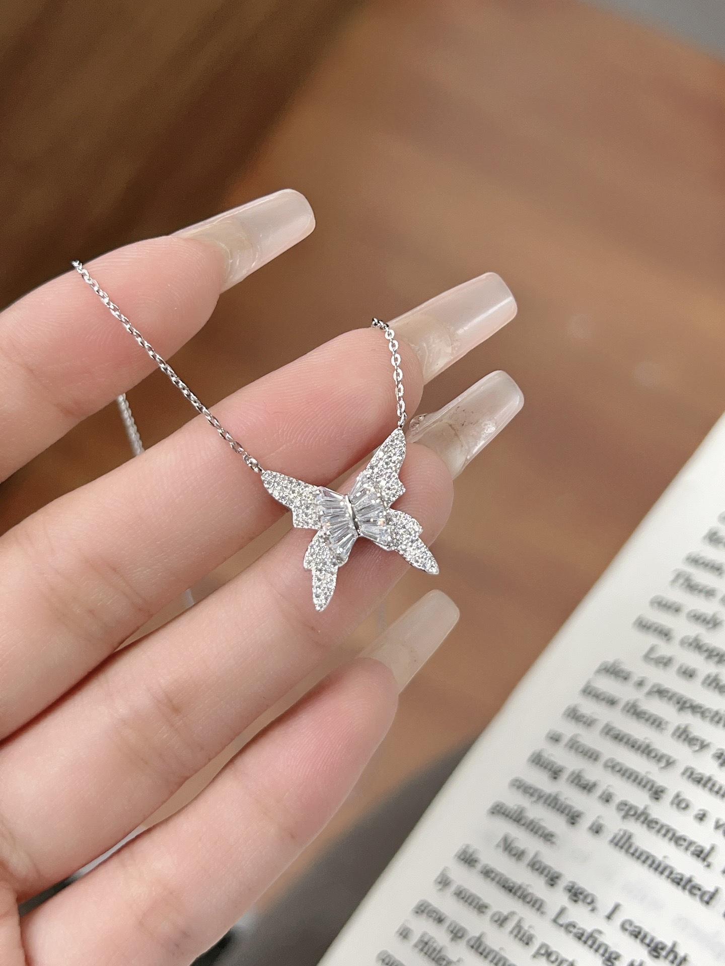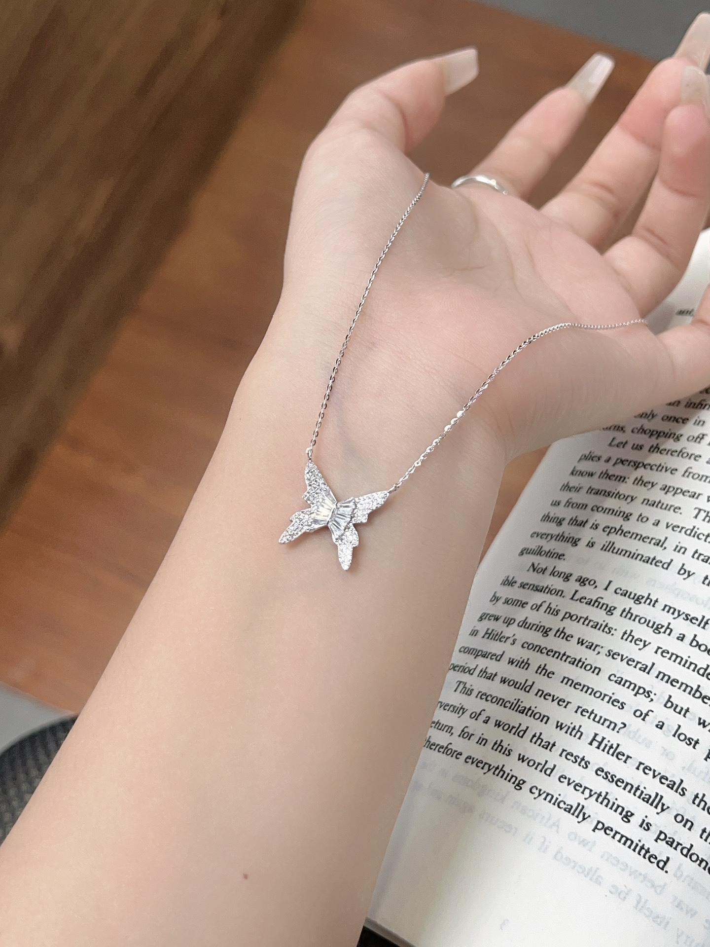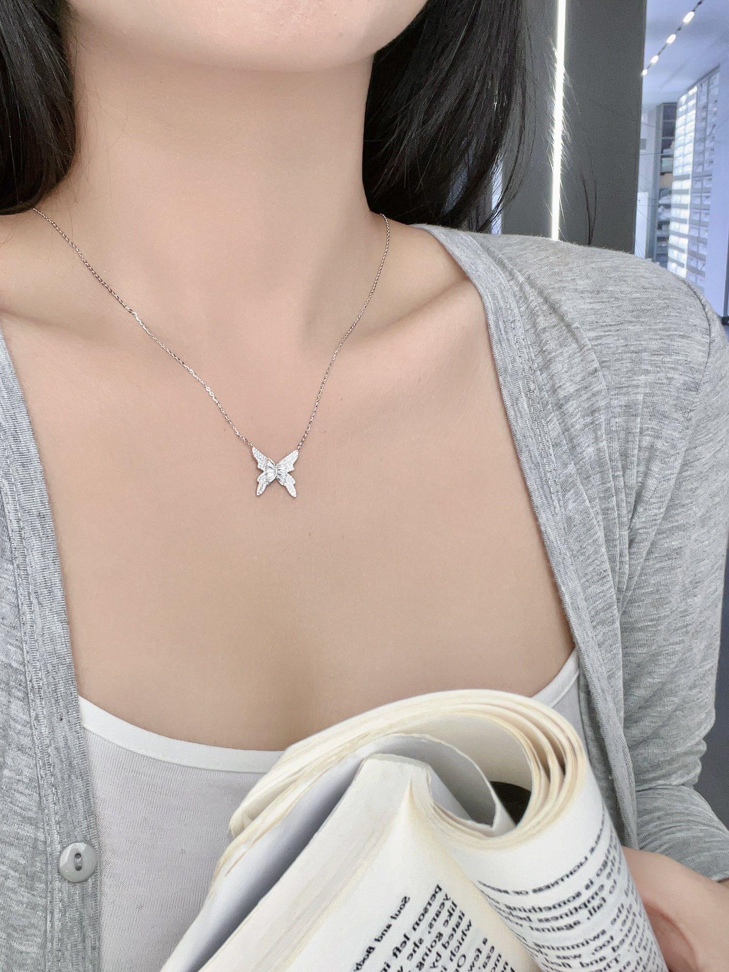 Collar de mariposa de plata esterlina S925 para mujer, estilo explosivo, diseño de nicho, cadena de clavícula ligera y lujosa, cadena de collar de alta calidad, venta al por mayor