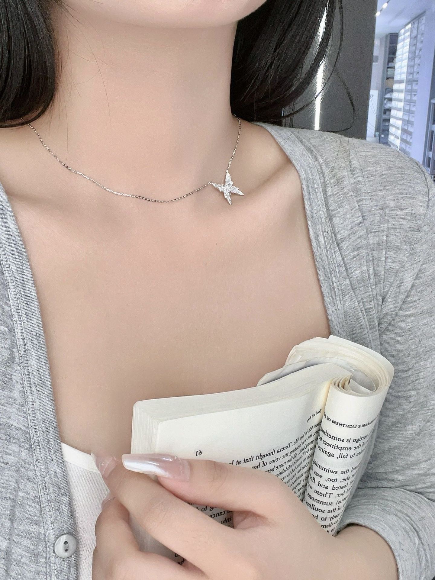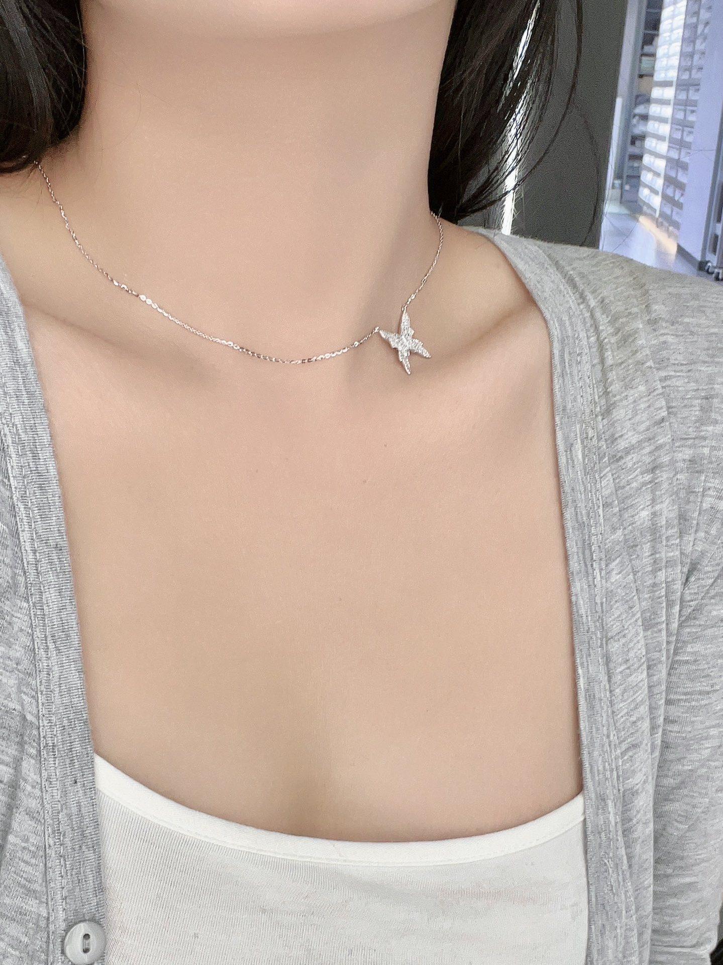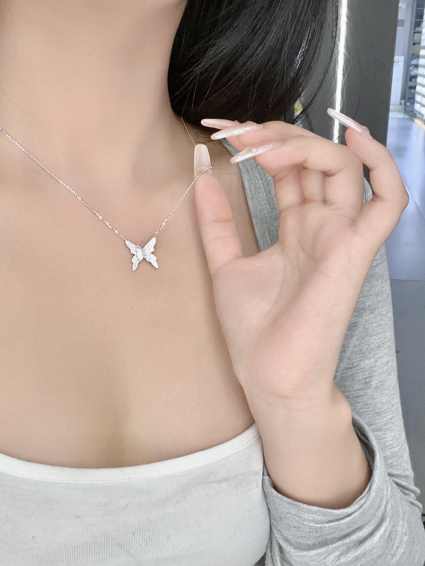 Collar de mariposa de plata esterlina S925 para mujer, estilo explosivo, diseño de nicho, cadena de clavícula ligera y lujosa, cadena de collar de alta calidad, venta al por mayor
