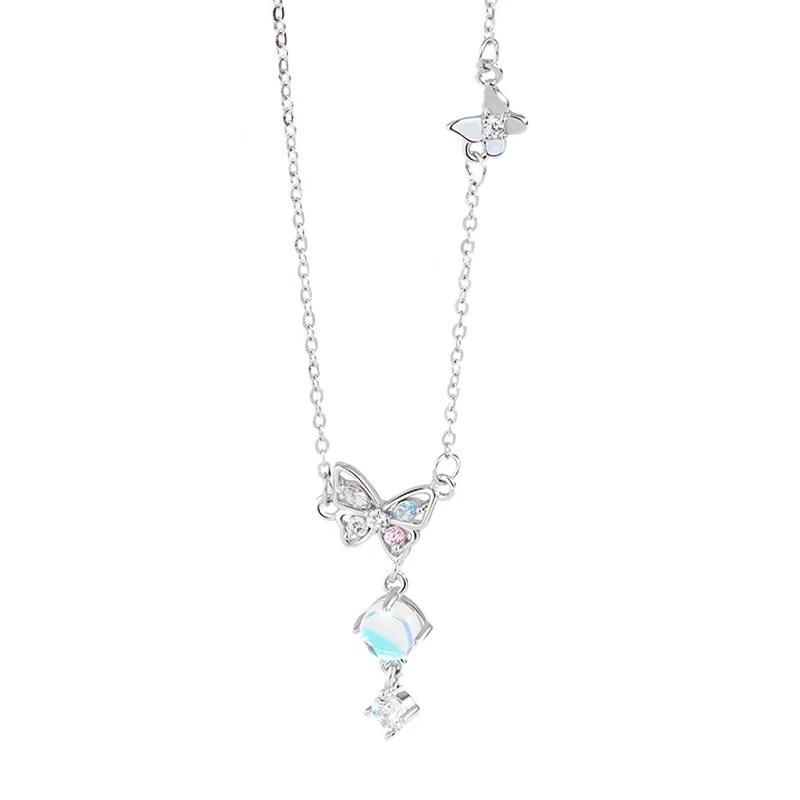 Compra Collar de mariposa con diamantes de colores en plata de ley S925 para niña, nuevo collar explosivo de 2024, cadena de clavícula de alta calidad y nicho de lujo ligero para mujer. al por mayor en Joom.pro
