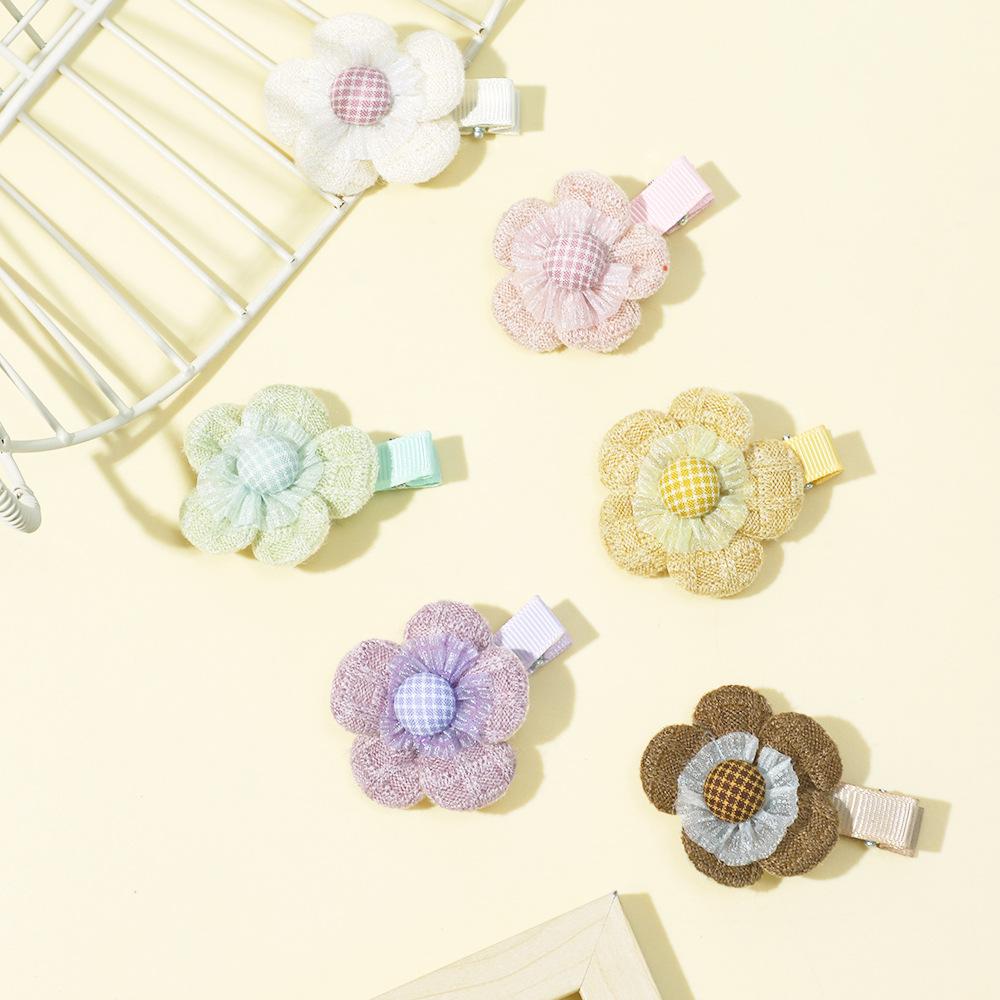 Nuevos accesorios para el cabello para niños transfronterizos, horquillas de flores de cinco pétalos de color sólido para bebés europeos y americanos, pinzas laterales para el cabello para niñas que no dañan el cabello, venta al por mayor