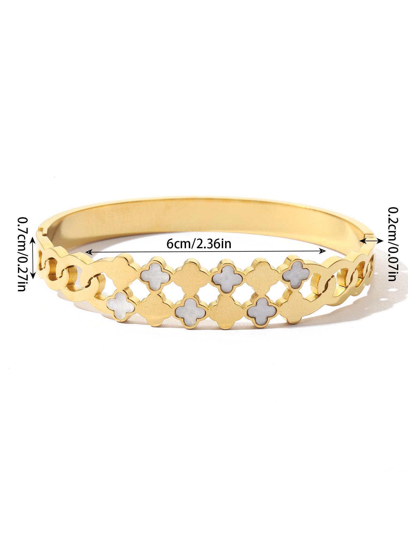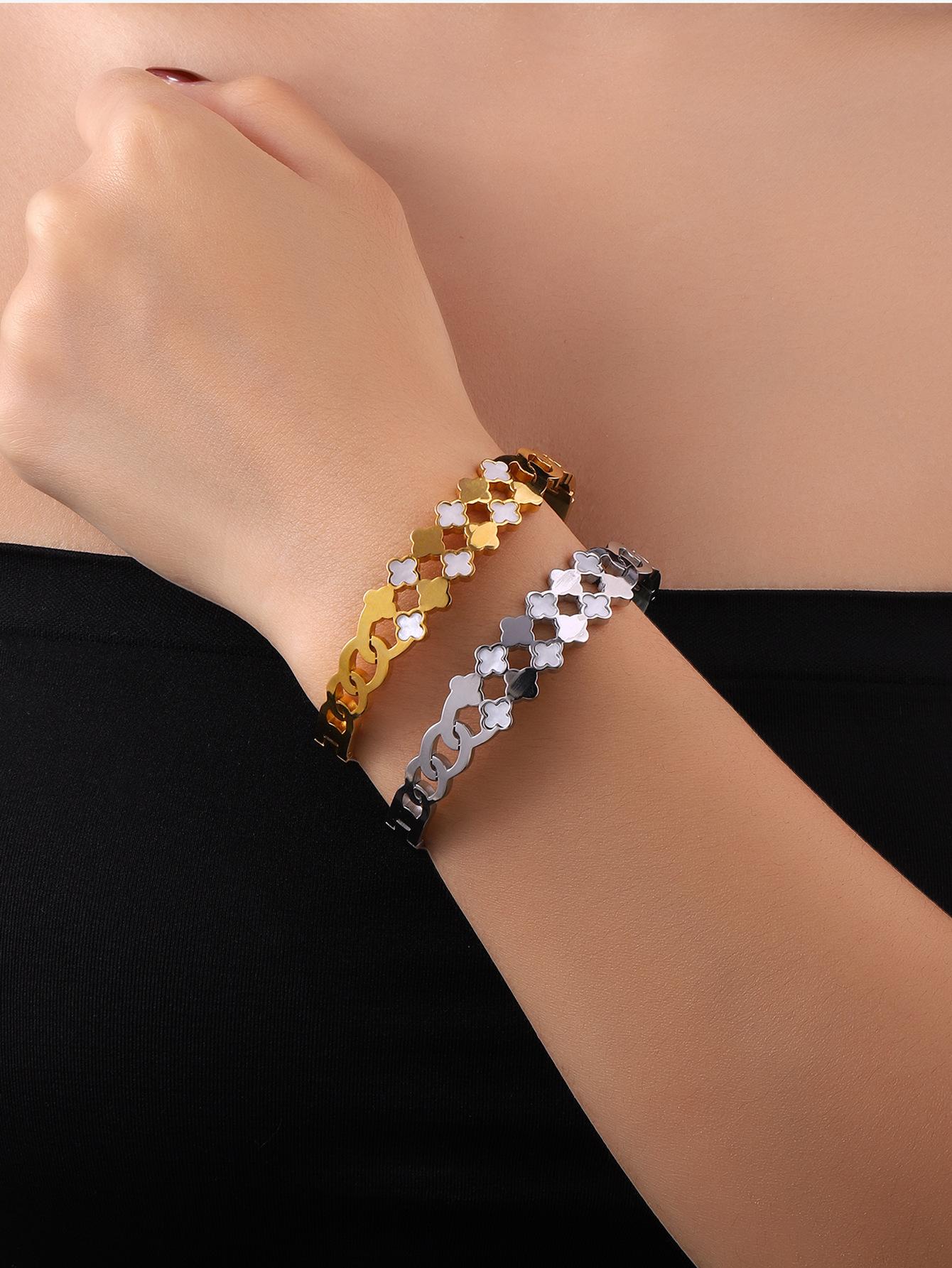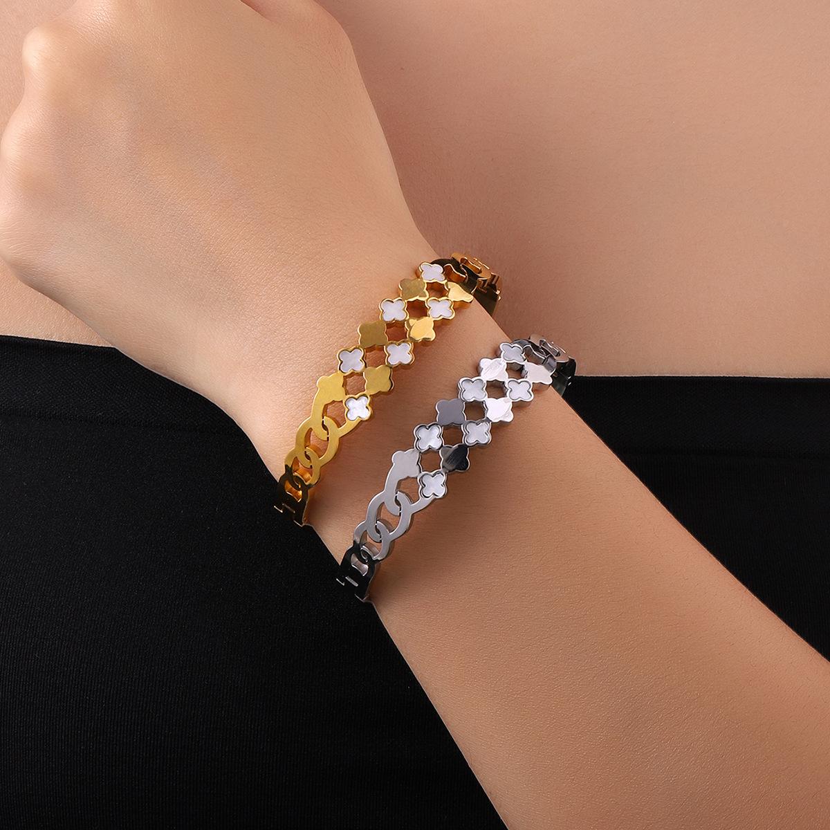 Europa y Estados Unidos moda de venta caliente no se desvanece pulsera de acero de titanio 18k trébol de cuatro hojas hueco diseño simple con sentido de la personalidad pulsera