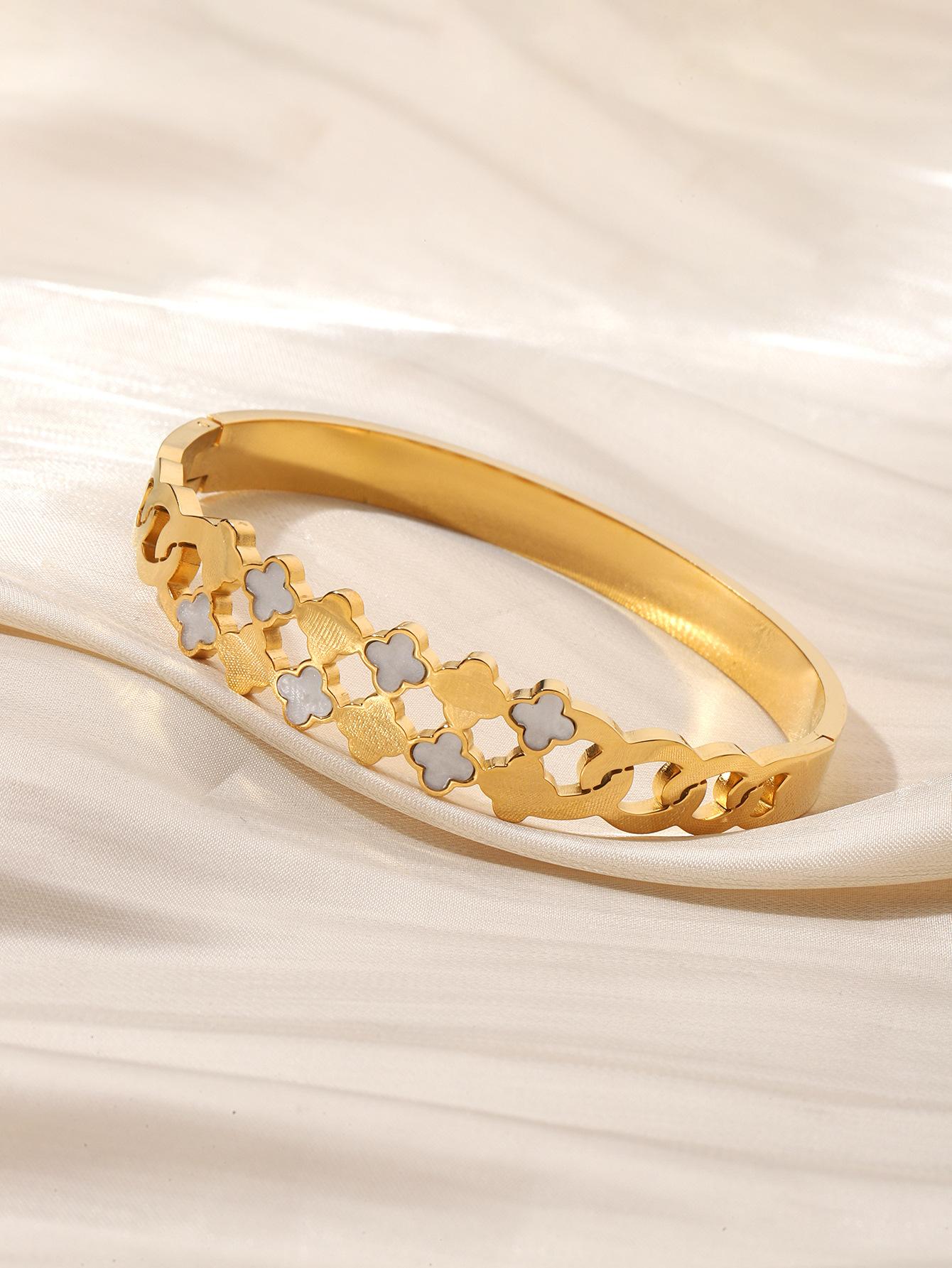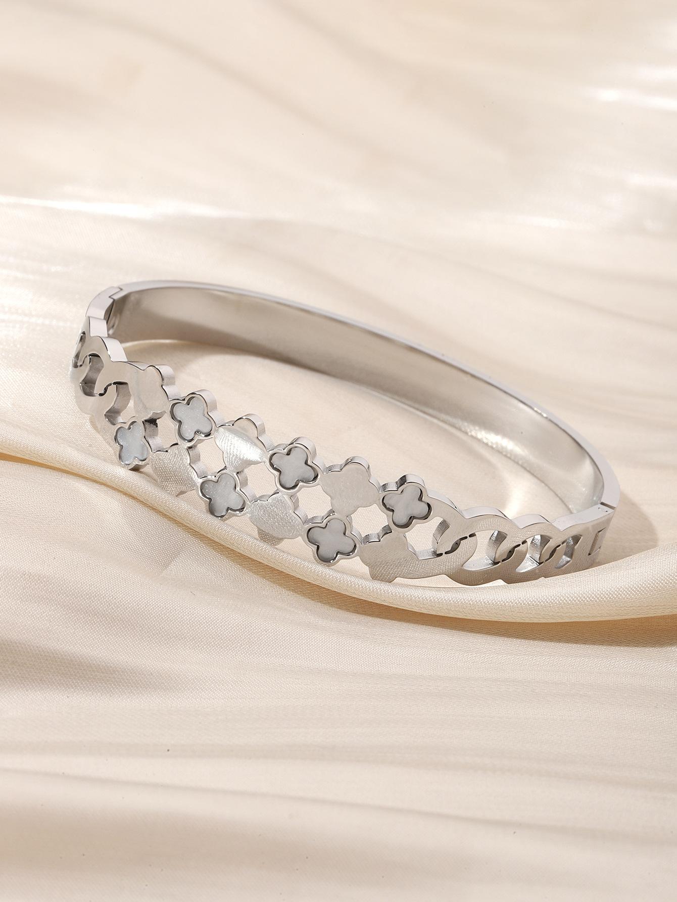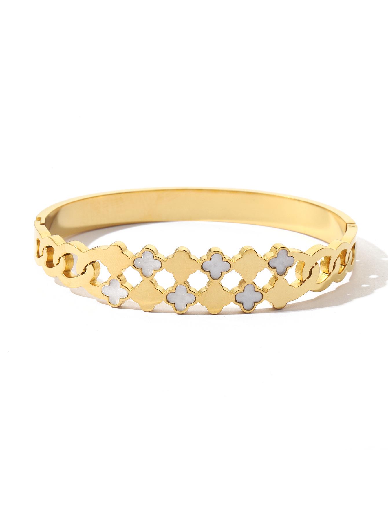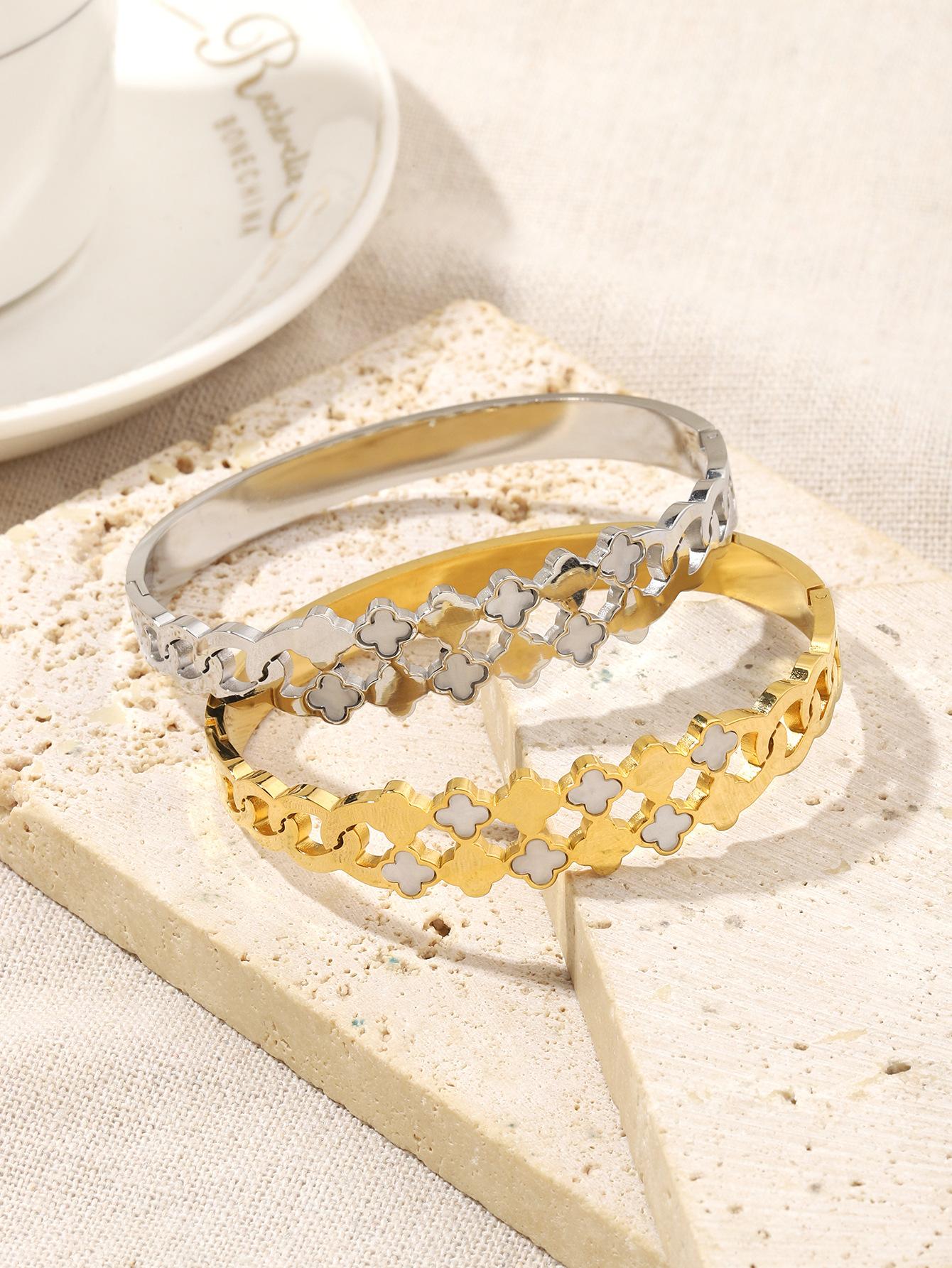 Europa y Estados Unidos moda de venta caliente no se desvanece pulsera de acero de titanio 18k trébol de cuatro hojas hueco diseño simple con sentido de la personalidad pulsera