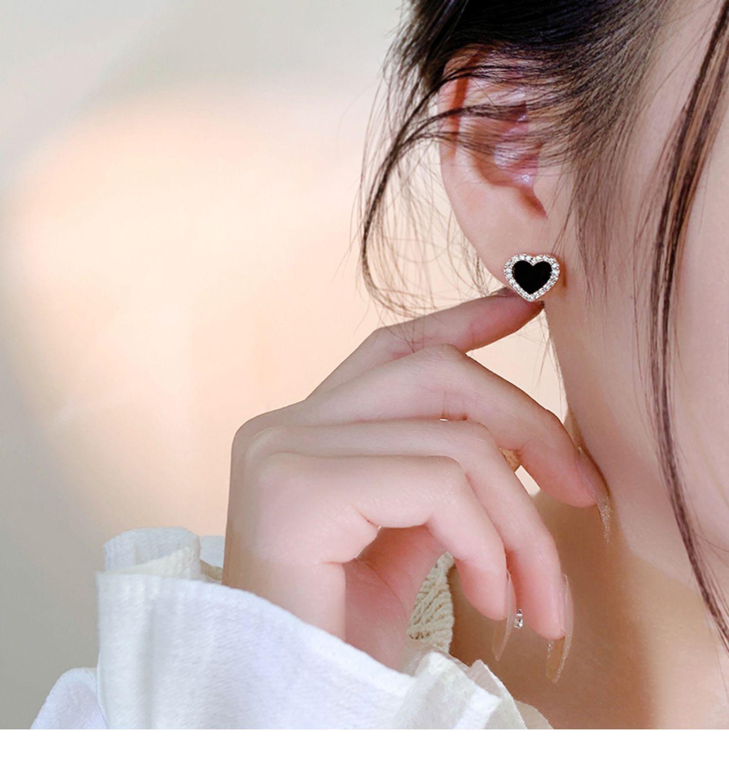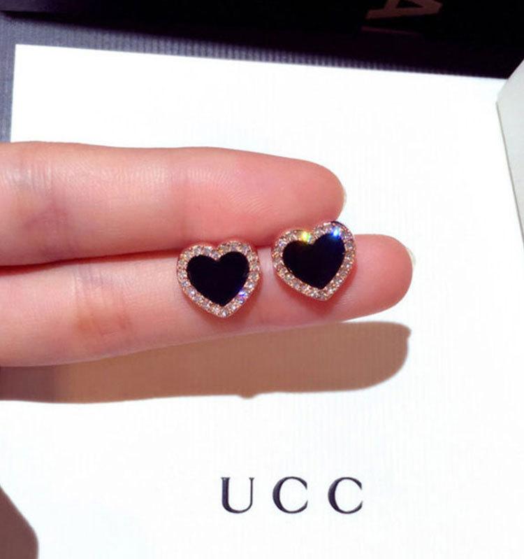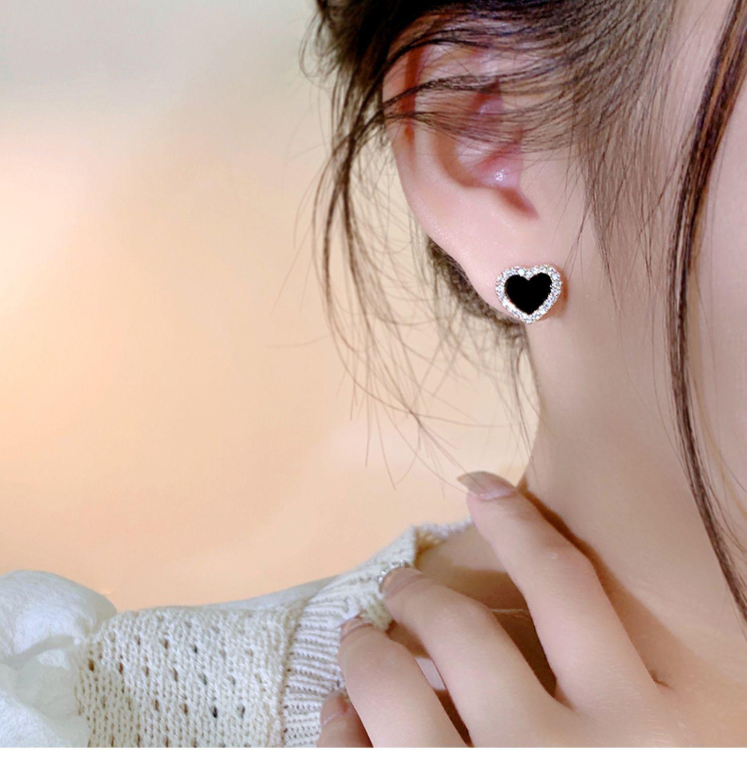 Pendientes de plata S925 con forma de aguja y corazón negro, de moda para mujer, 2024, de alta gama, ligeros y lujosos, con fragancia.