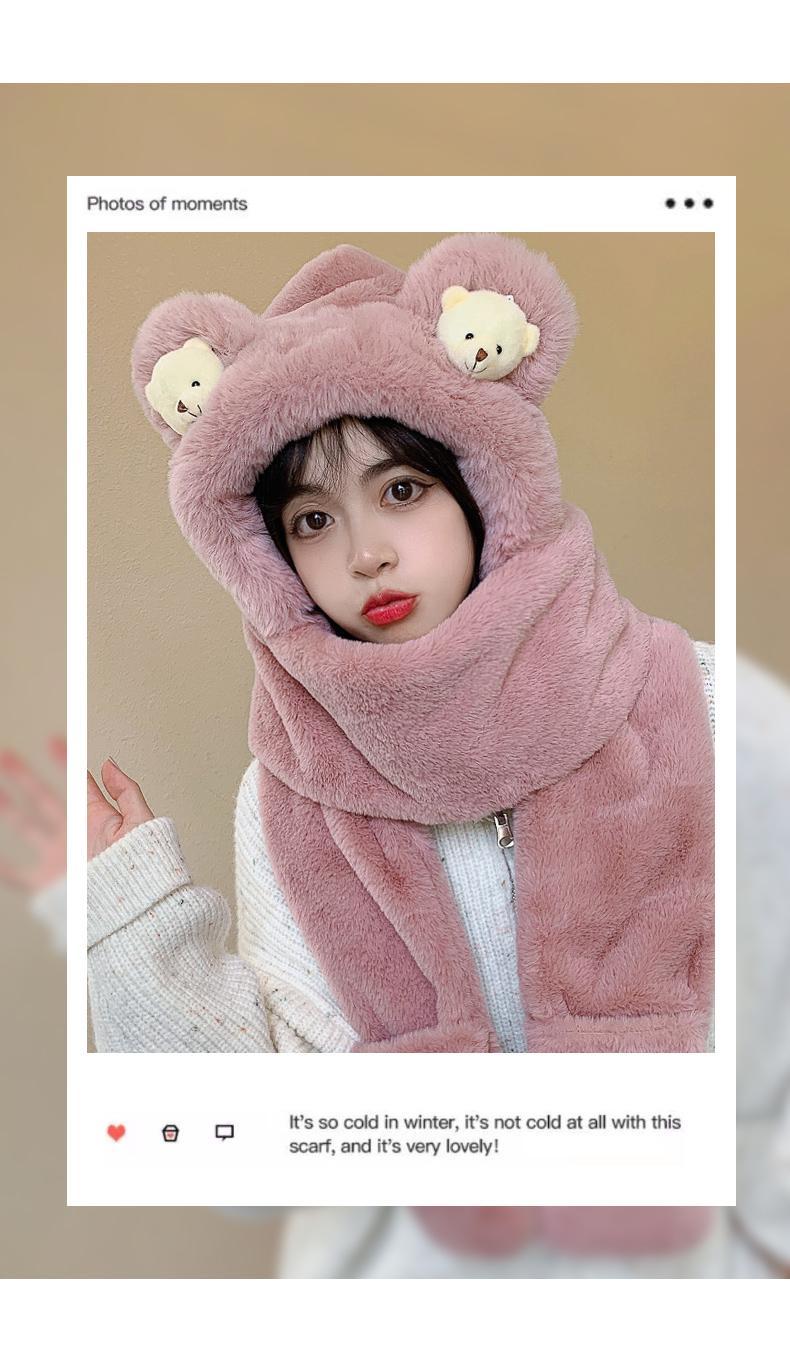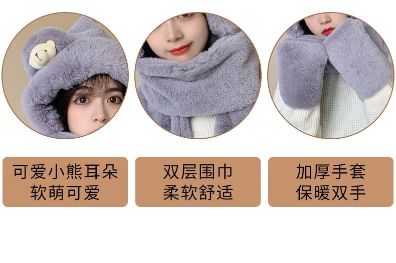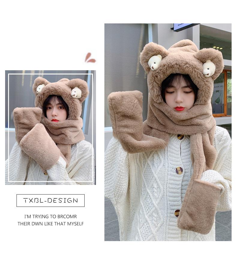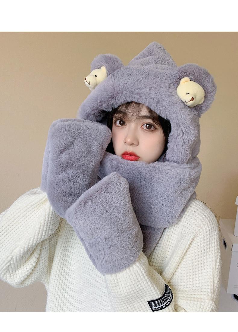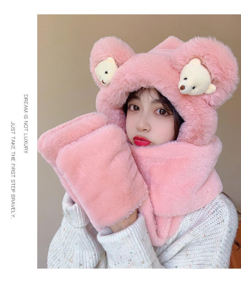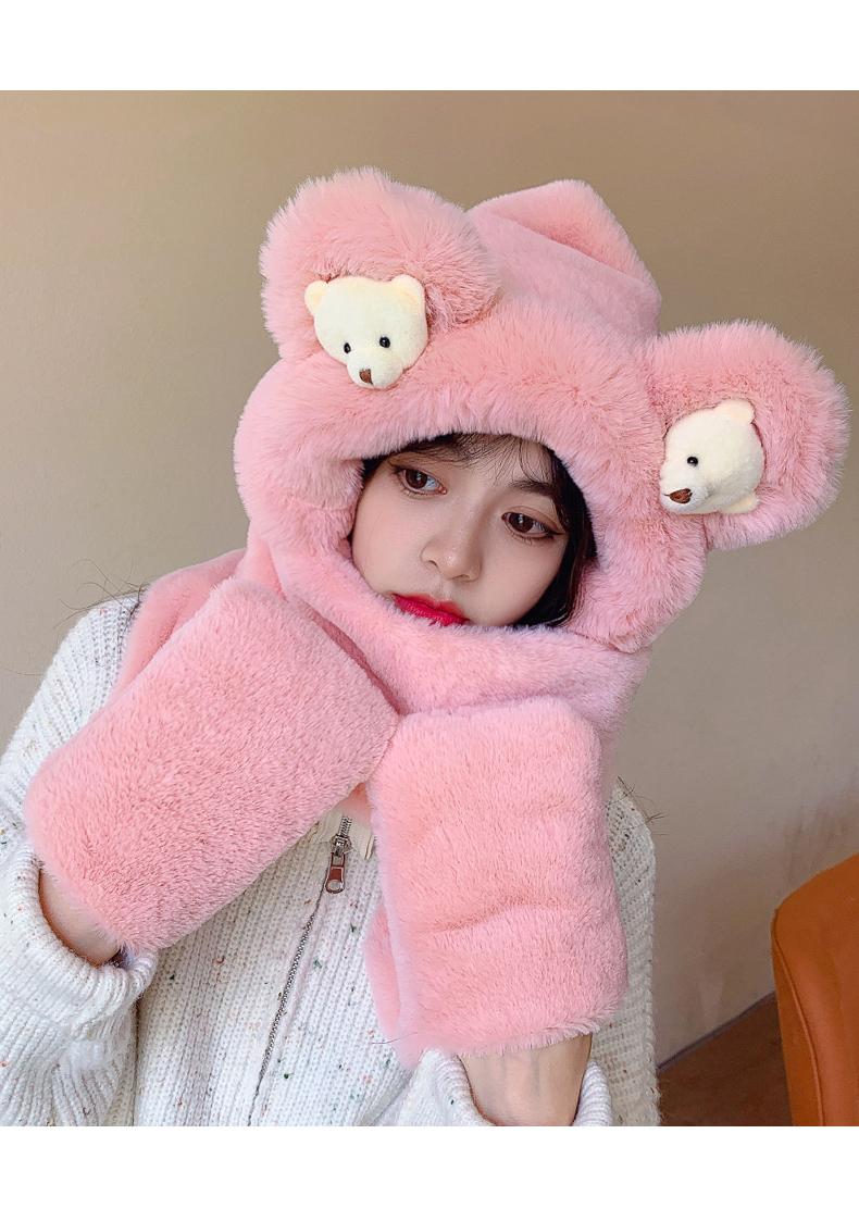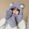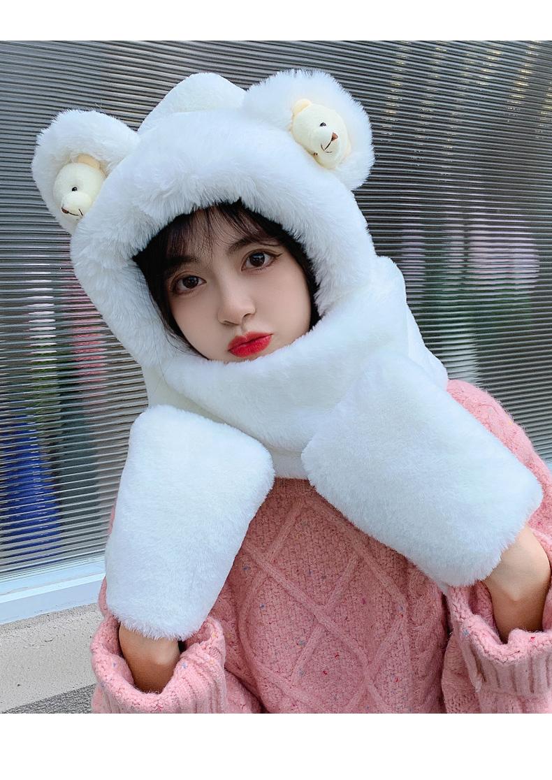 Gorro Cálido Grueso de Invierno, Bufanda y Guantes Todo en Uno Juego de Tres Piezas Lindo Oso Estudiante Ciclismo Protección para las Orejas Gorro de Felpa