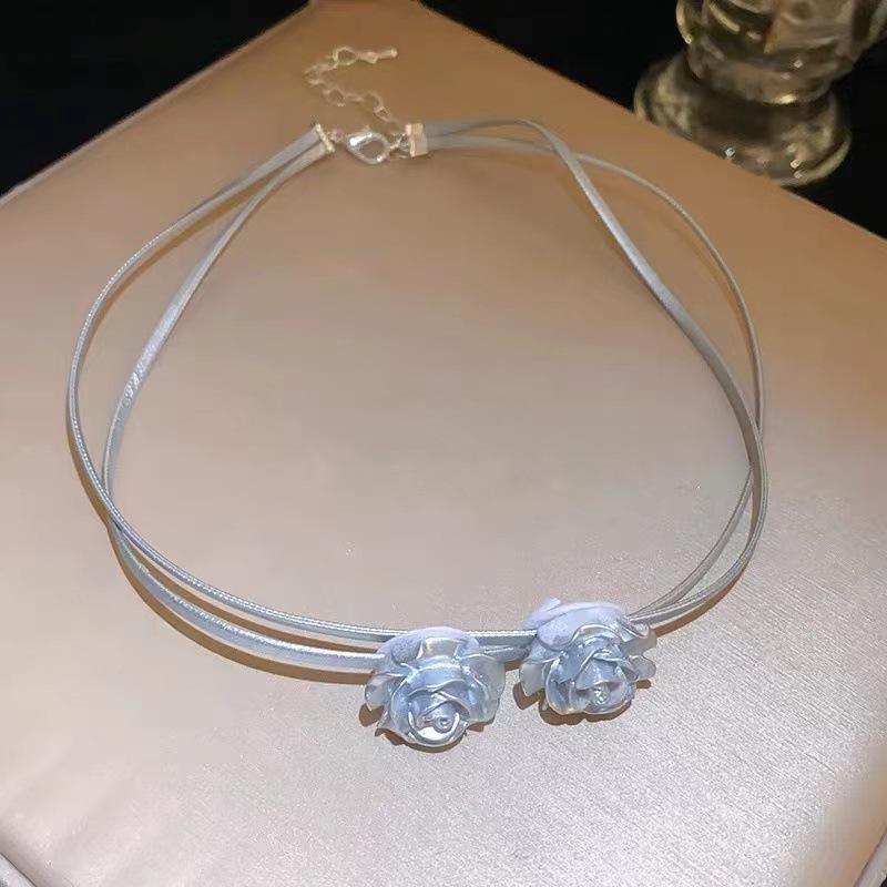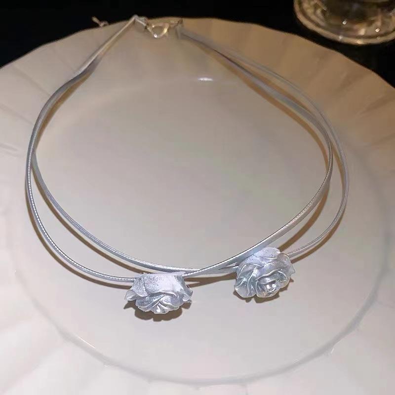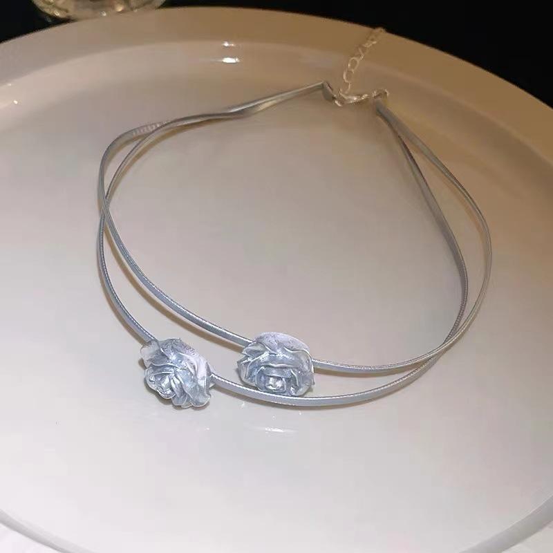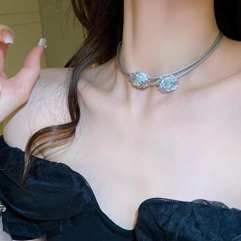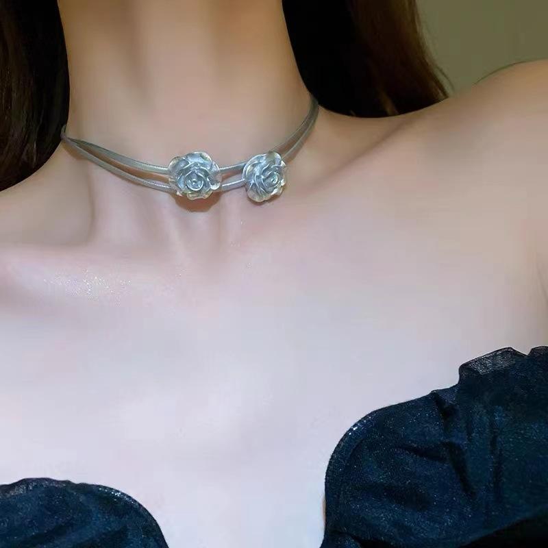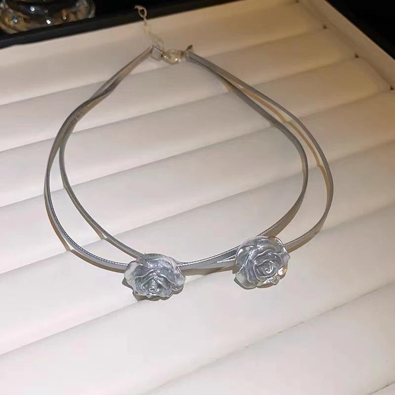 Gargantilla de estilo frío de alta calidad para mujer, cadena de clavícula de rosa plateada, diseño de nicho, accesorios de vestir de doble capa