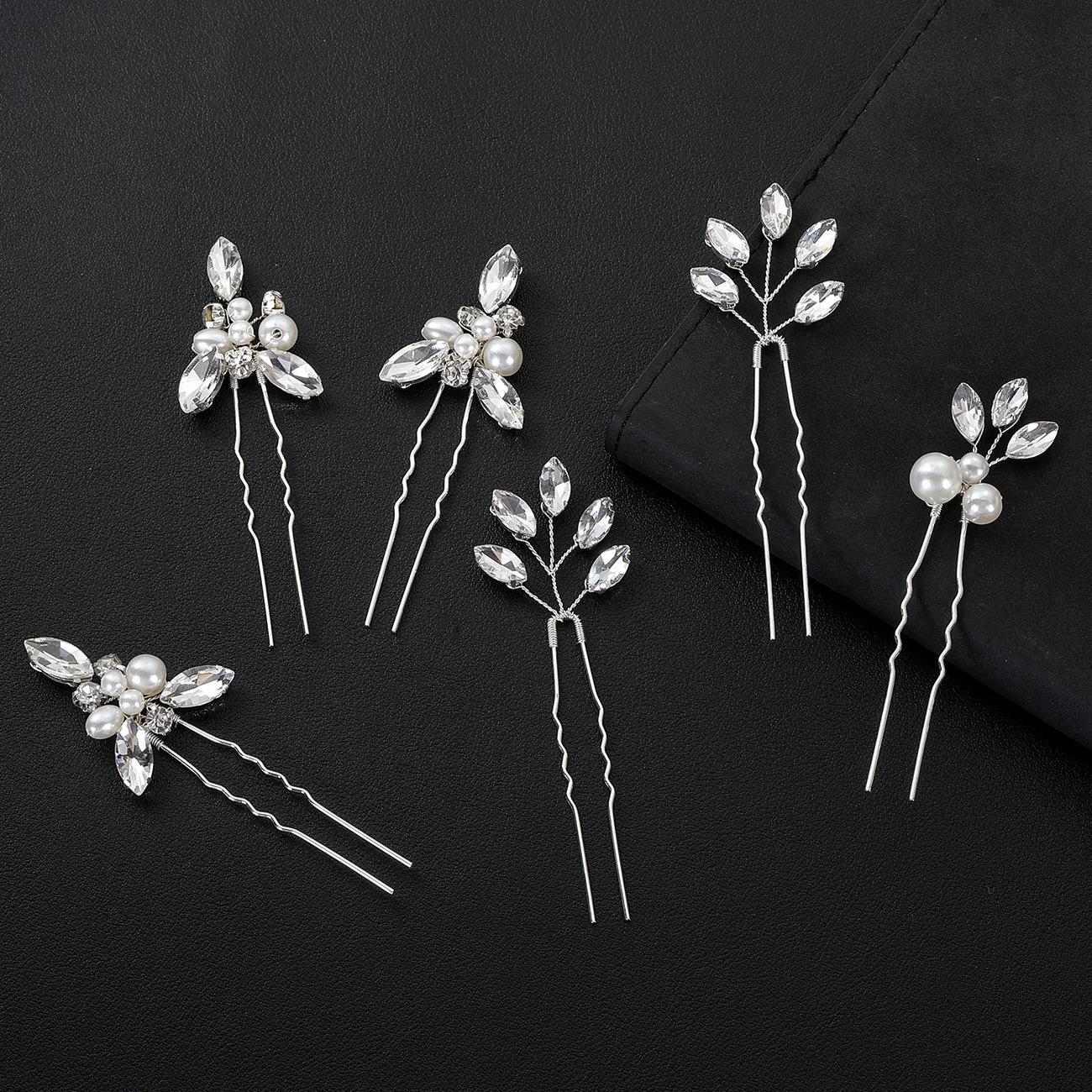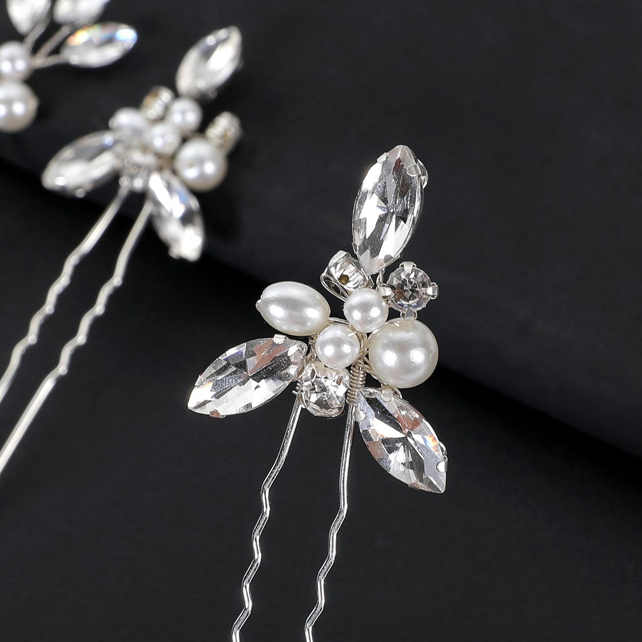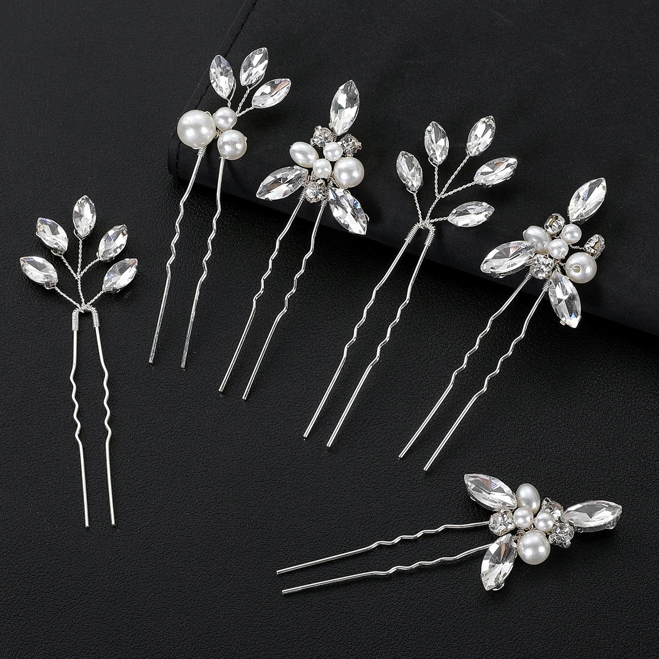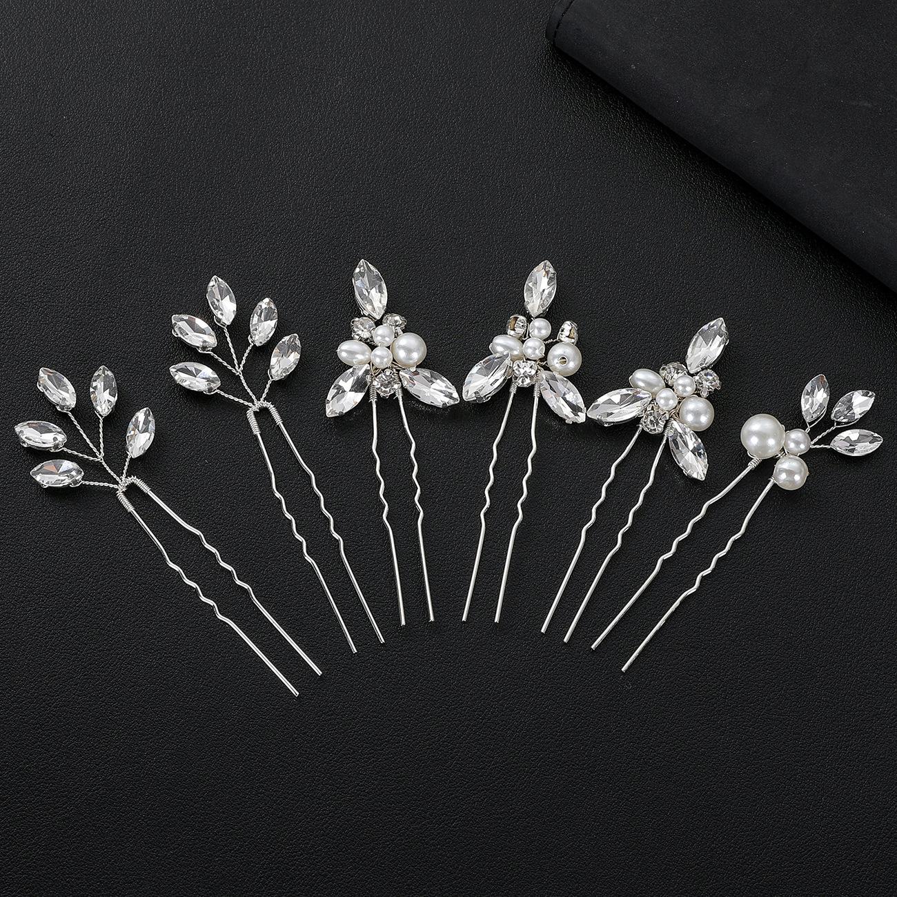 Europa y Estados Unidos accesorios de boda para novia transfronteriza 6 un grupo de horquillas en forma de U combinación de horquillas de perlas ojo de caballo