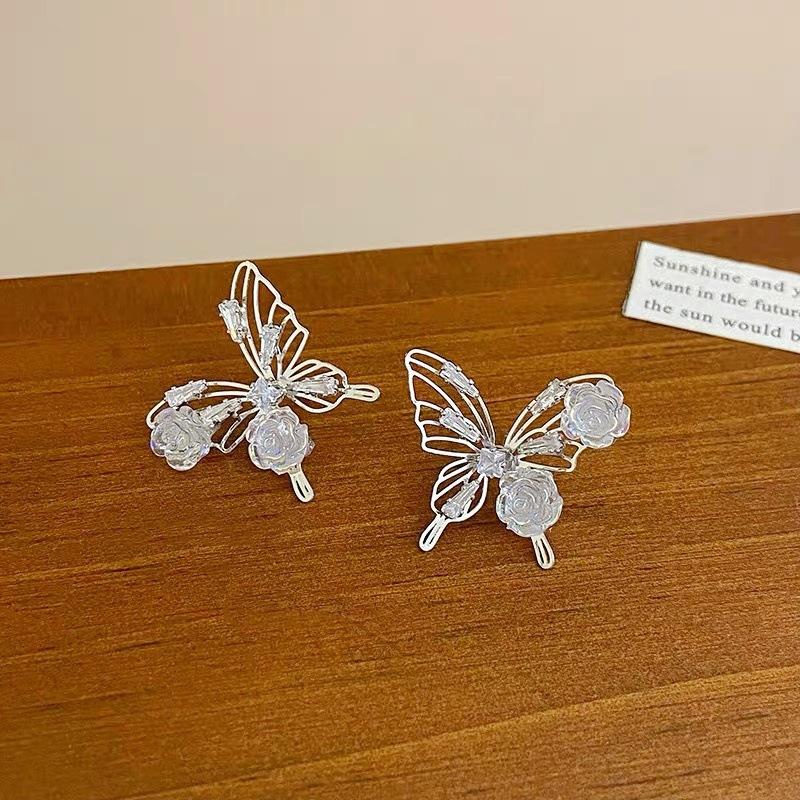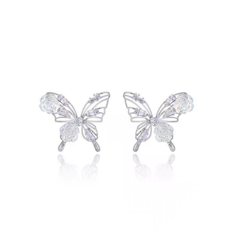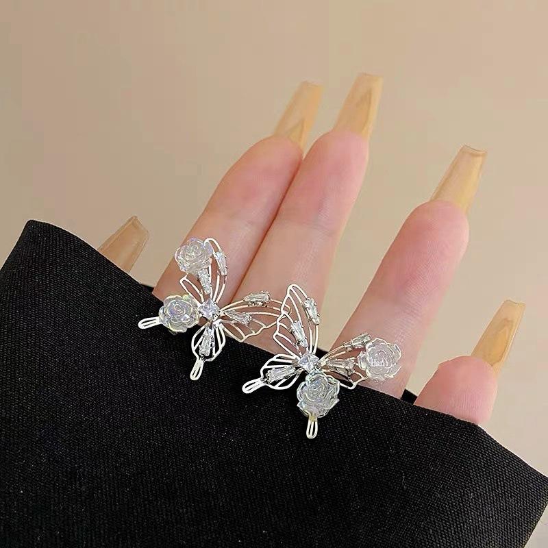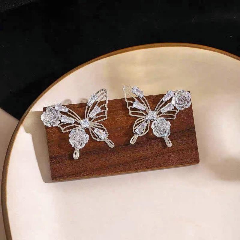 Pendientes huecos de mariposa con temperamento de súper hada, diseño de nicho, exquisitos pendientes de Joker con microincrustaciones de rosa, venta al por mayor