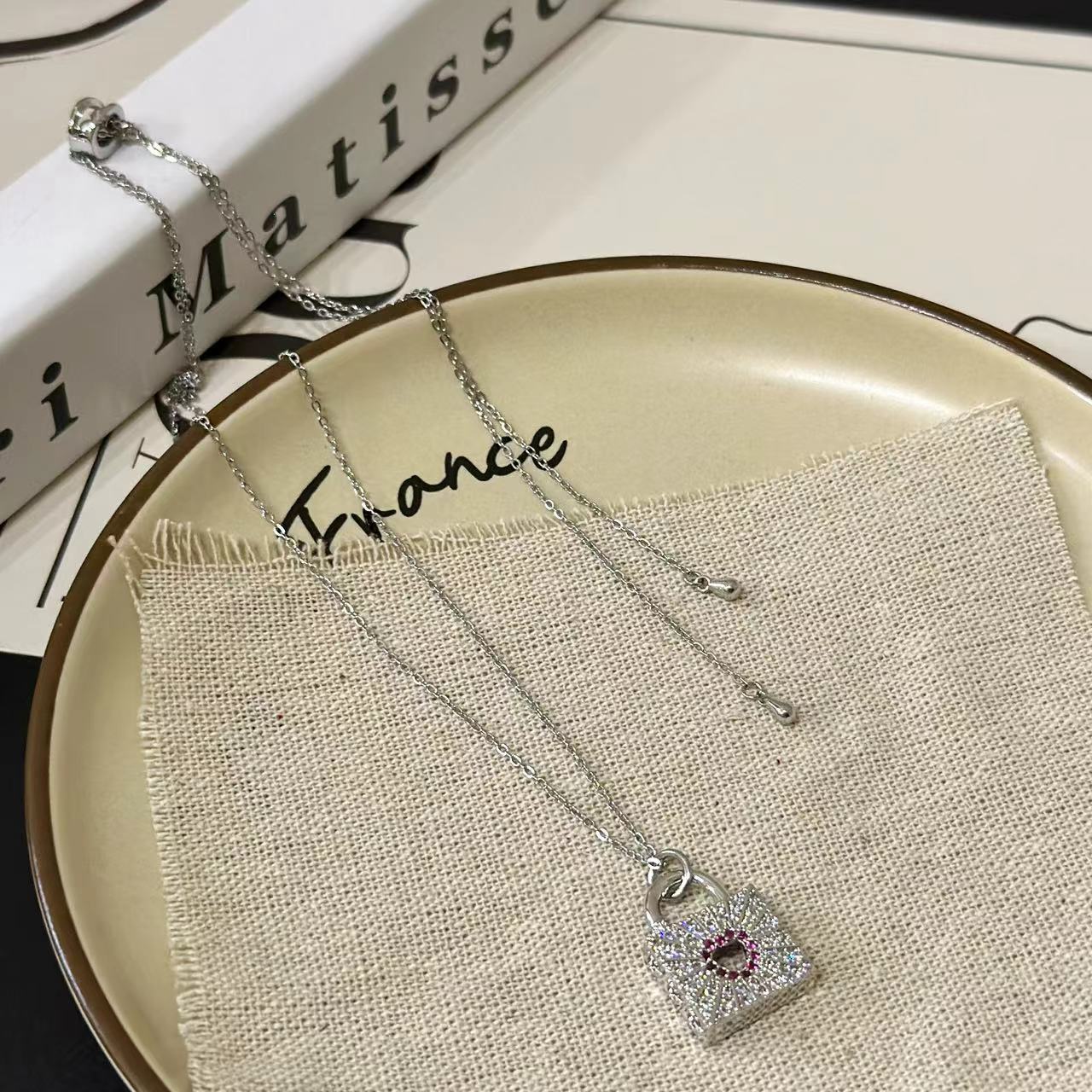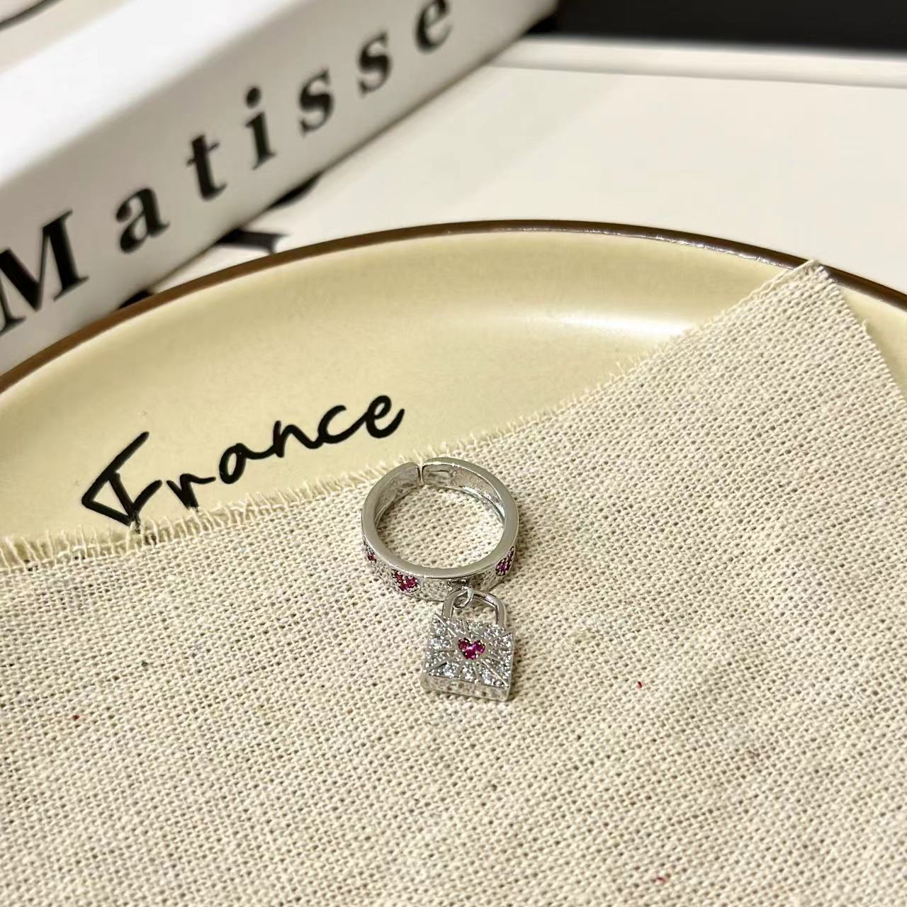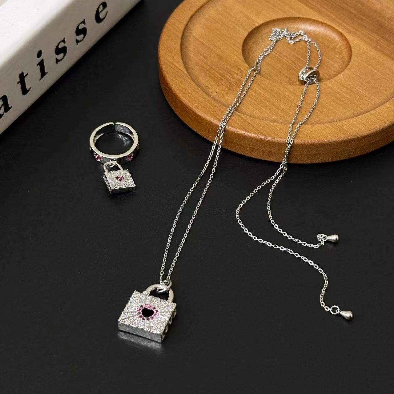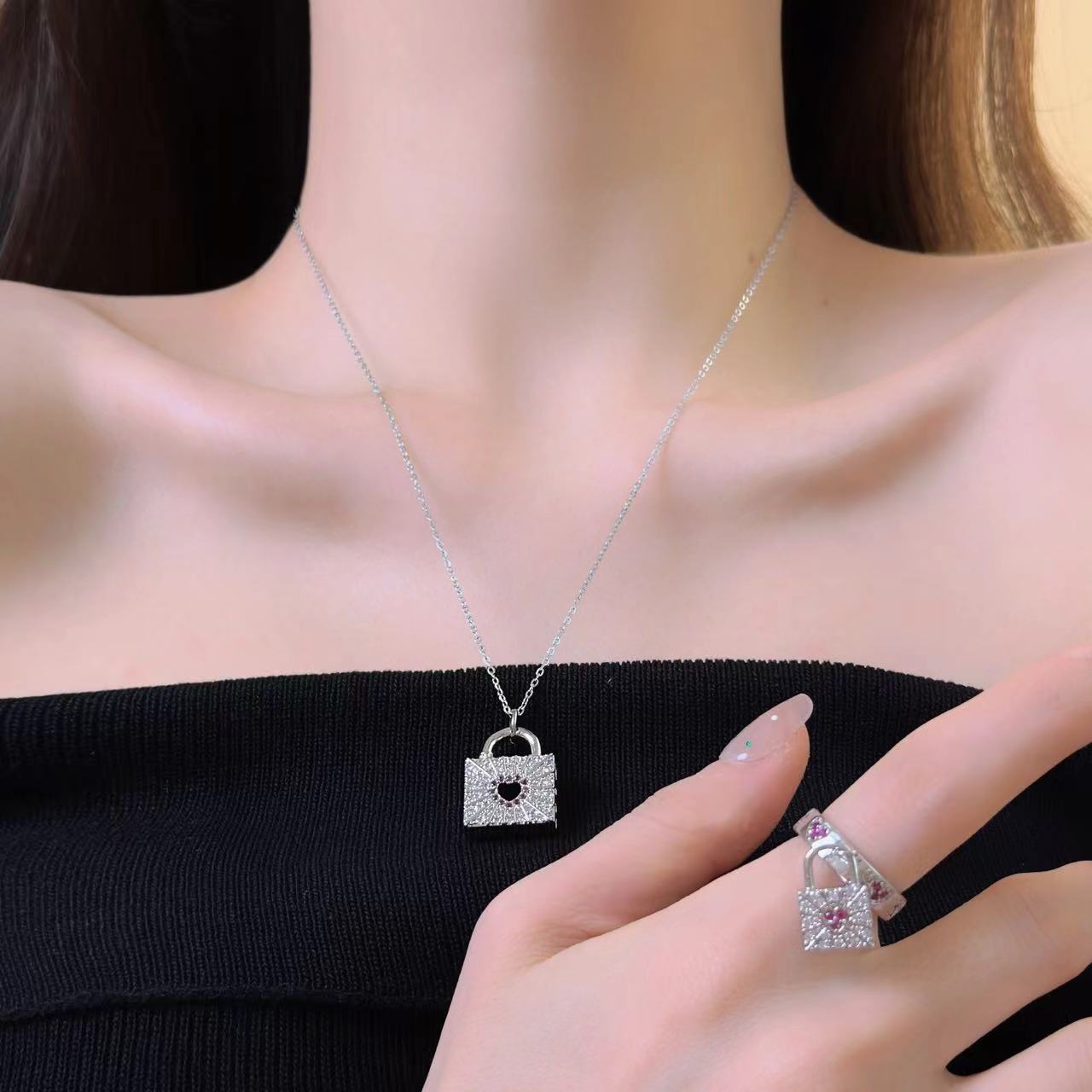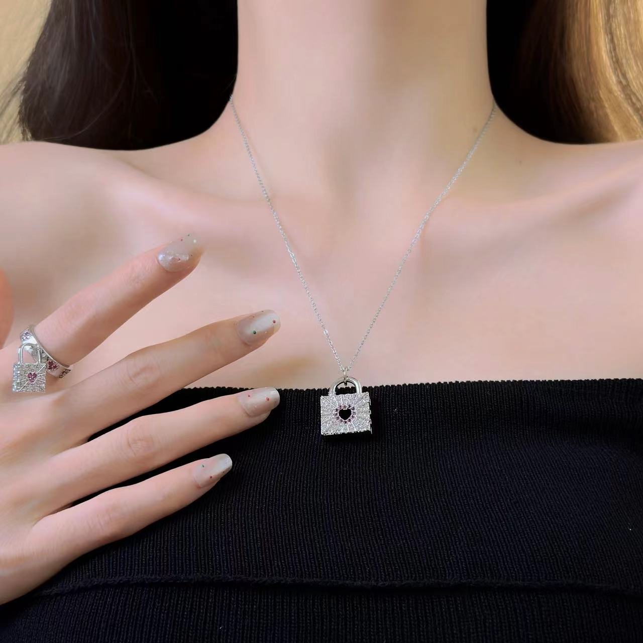 Collar con candado pequeño de diamantes de color para niña, diseño de nicho de lujo ligero, anillo de sentido avanzado para regalo de cumpleaños de novia.
