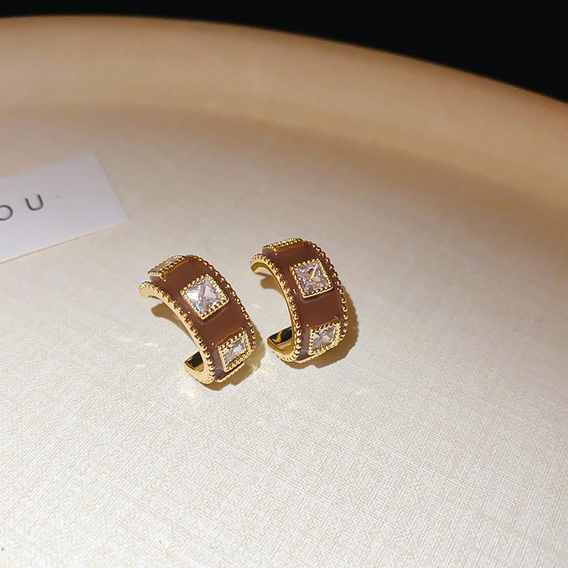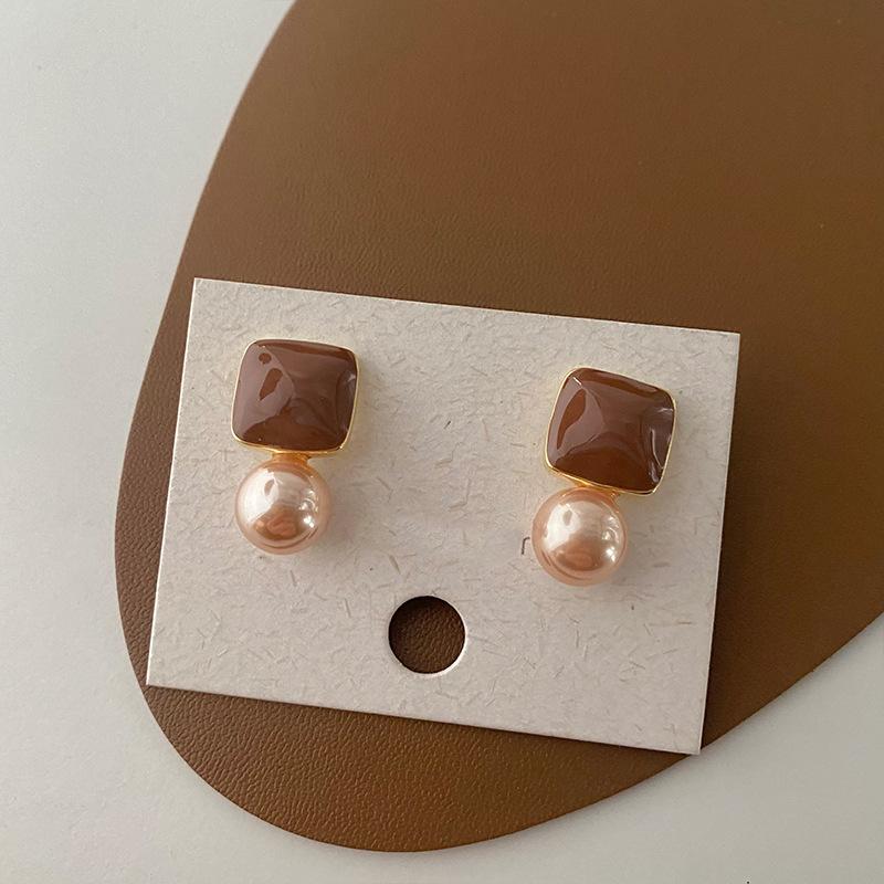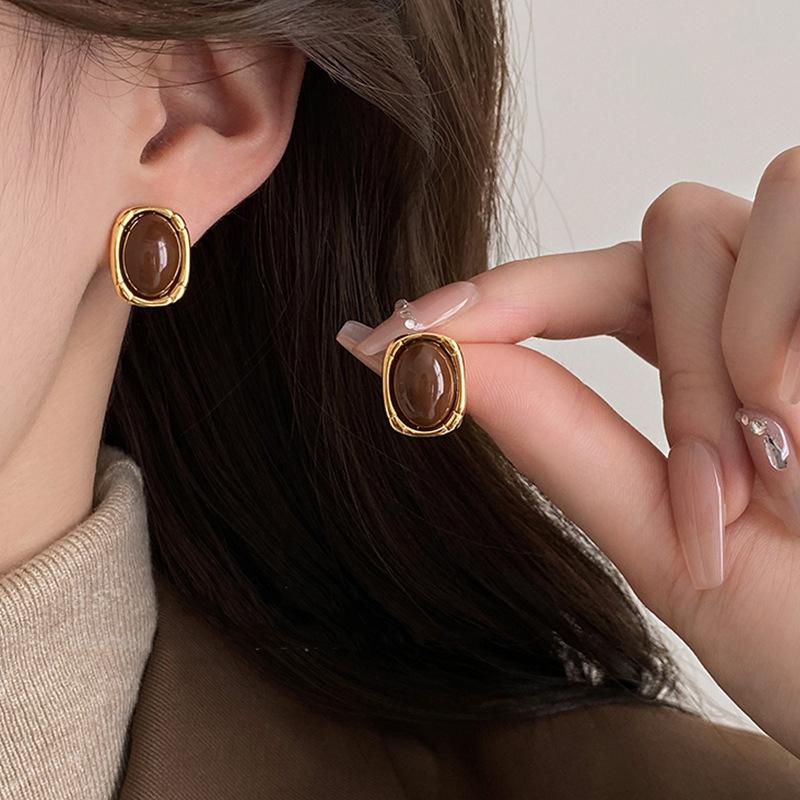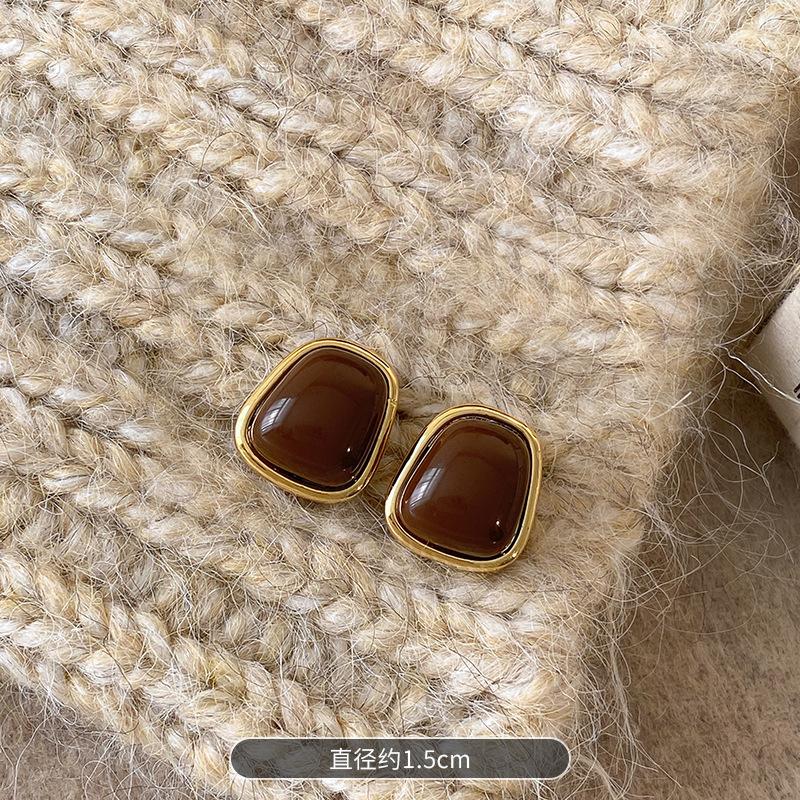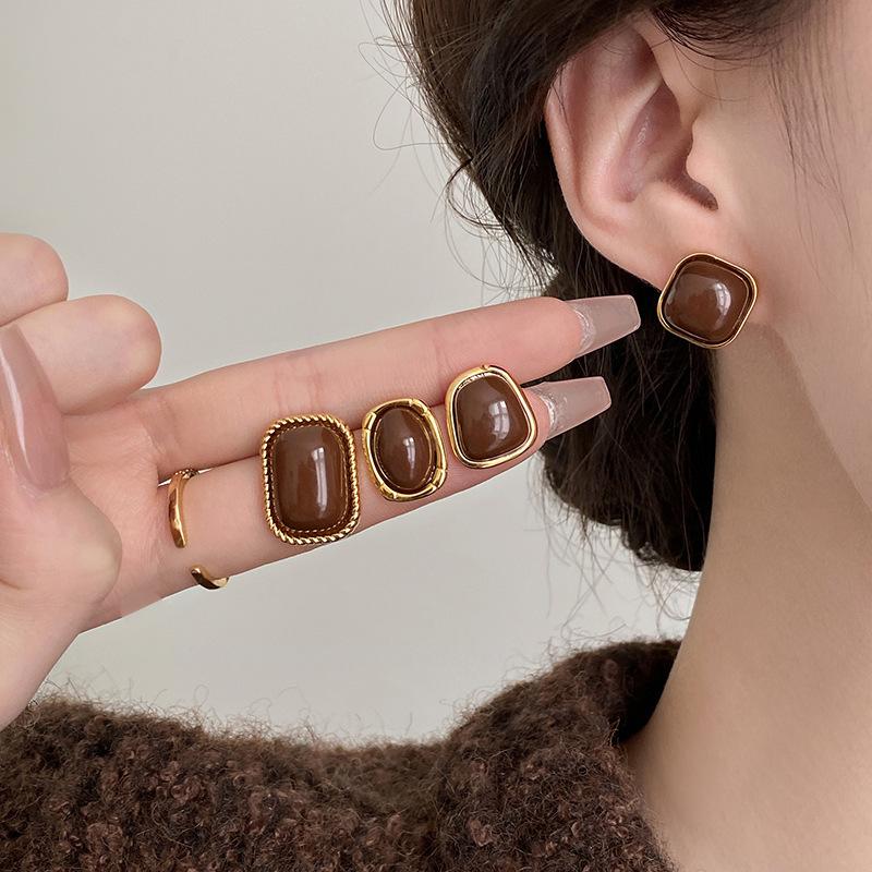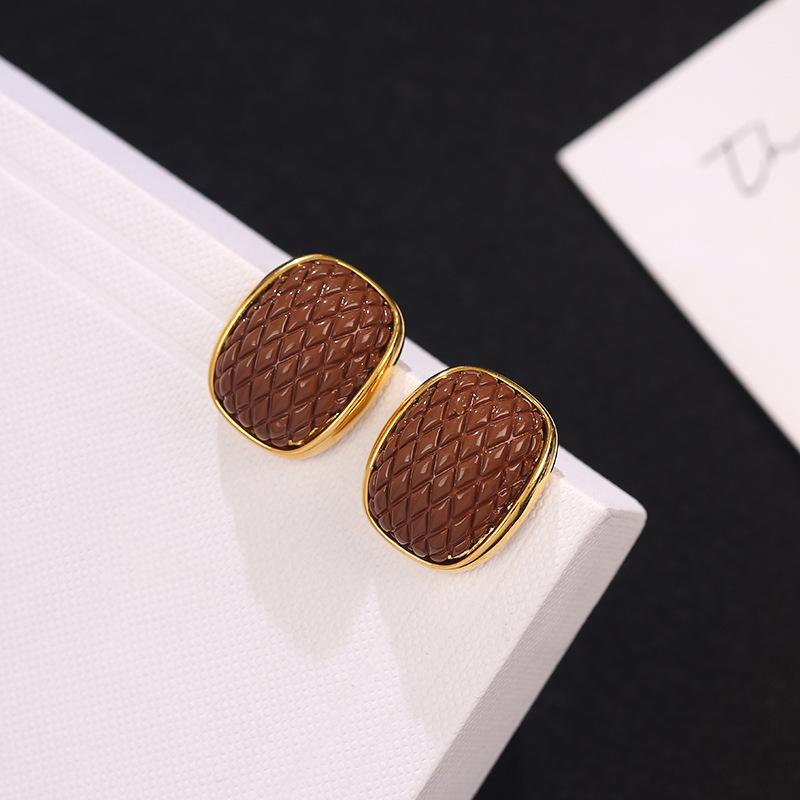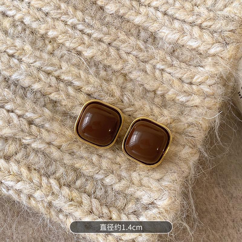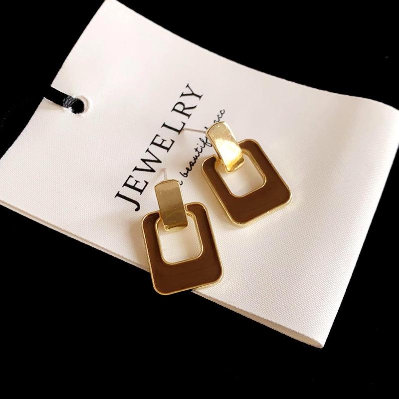 Aretes Geométricos Cuadrados Populares Color Café Aguja de Plata Nicho para Mujer Únicos de Alta Gama Aretes Elegantes Populares Color Café