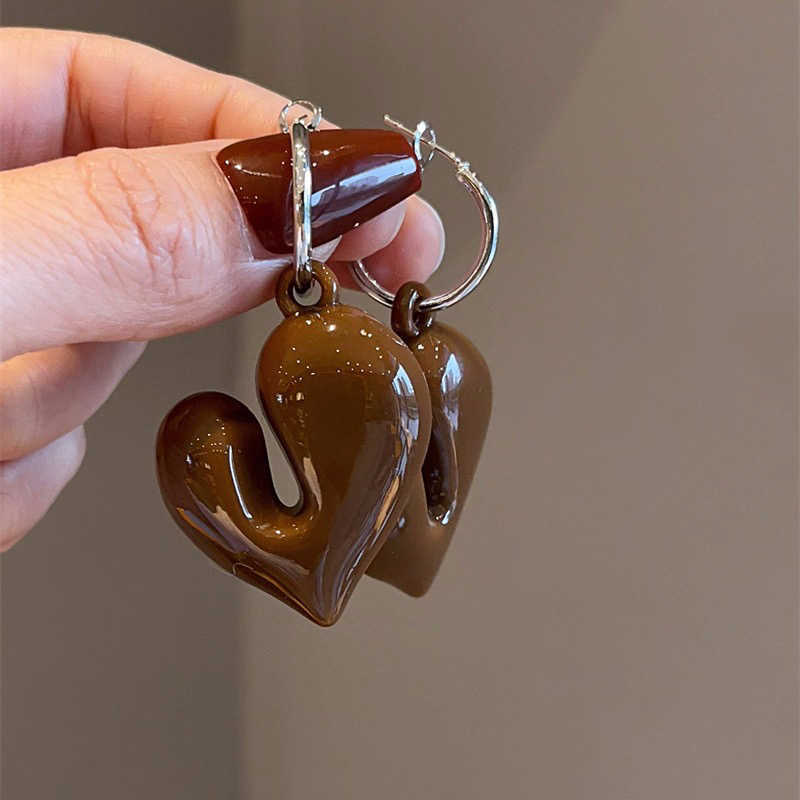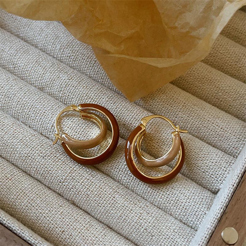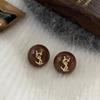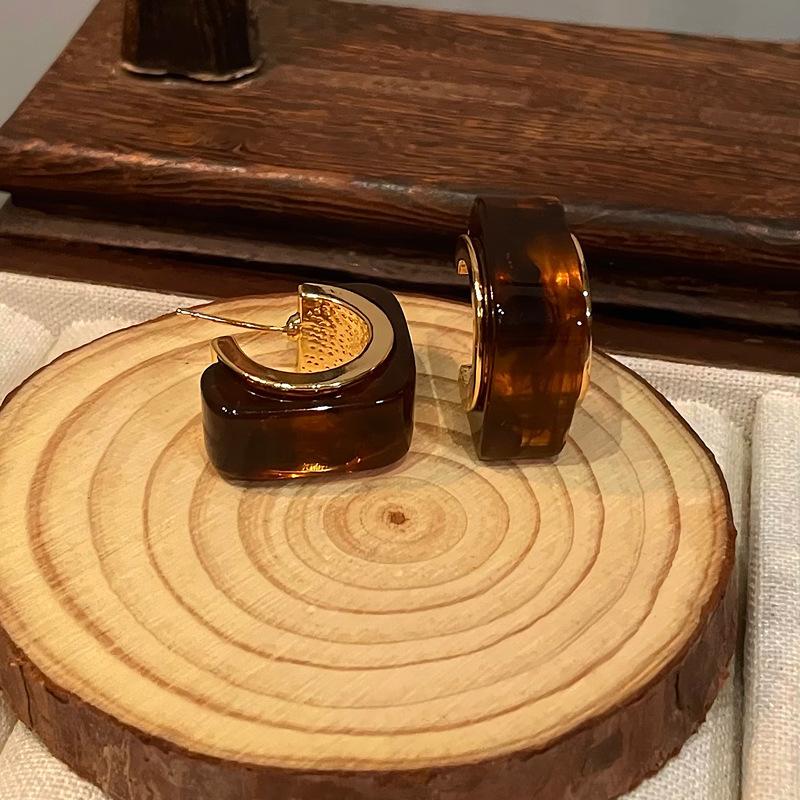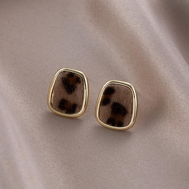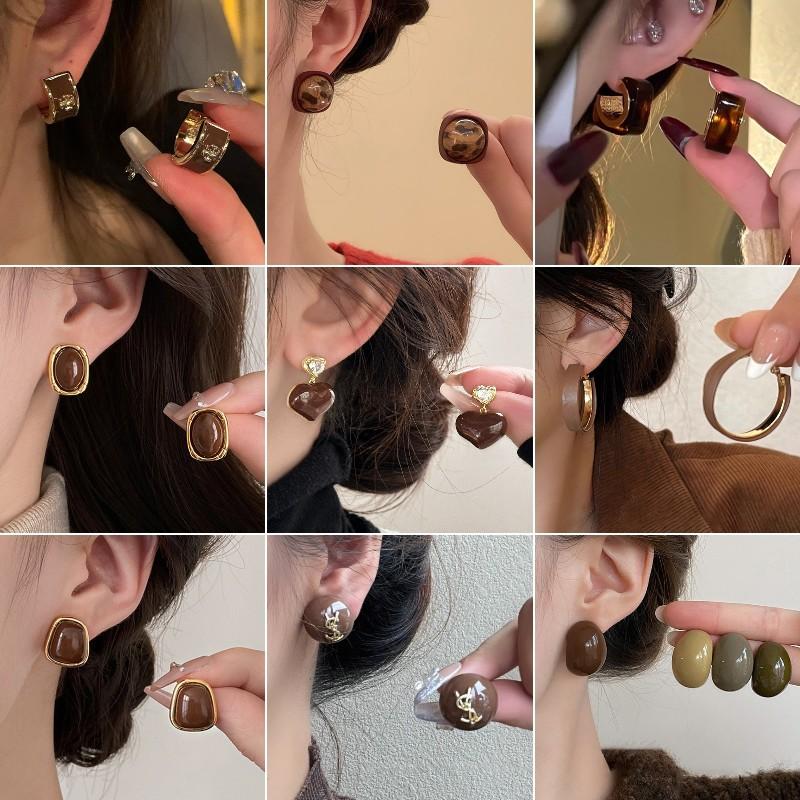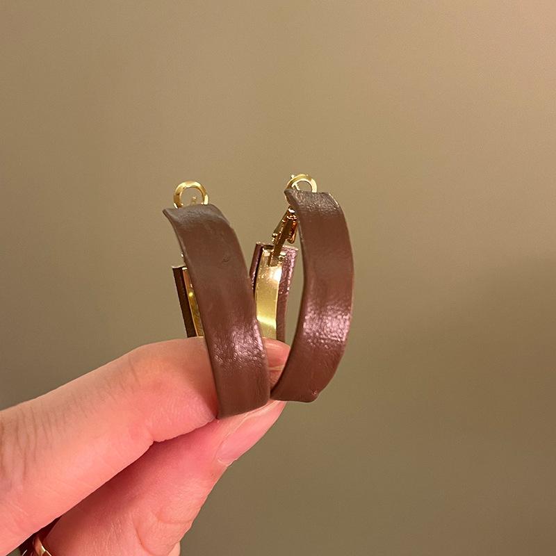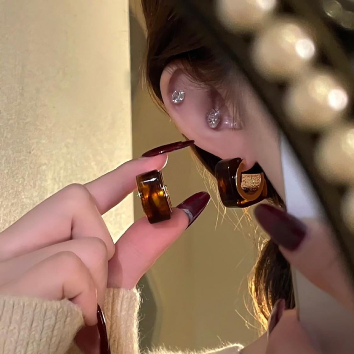 Aretes Geométricos Cuadrados Populares Color Café Aguja de Plata Nicho para Mujer Únicos de Alta Gama Aretes Elegantes Populares Color Café