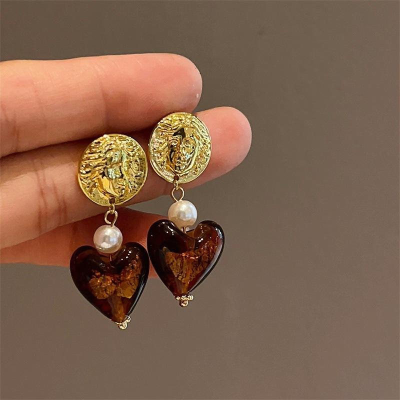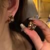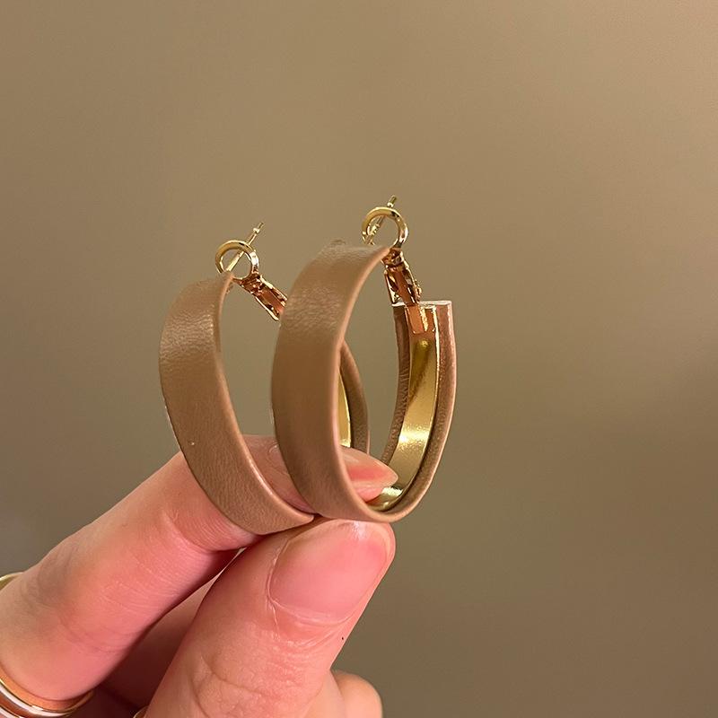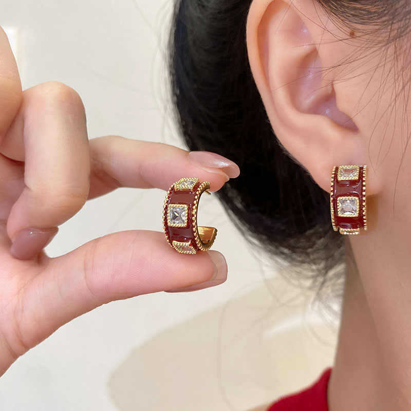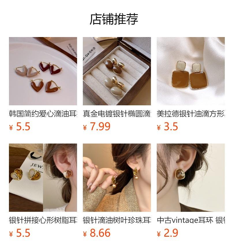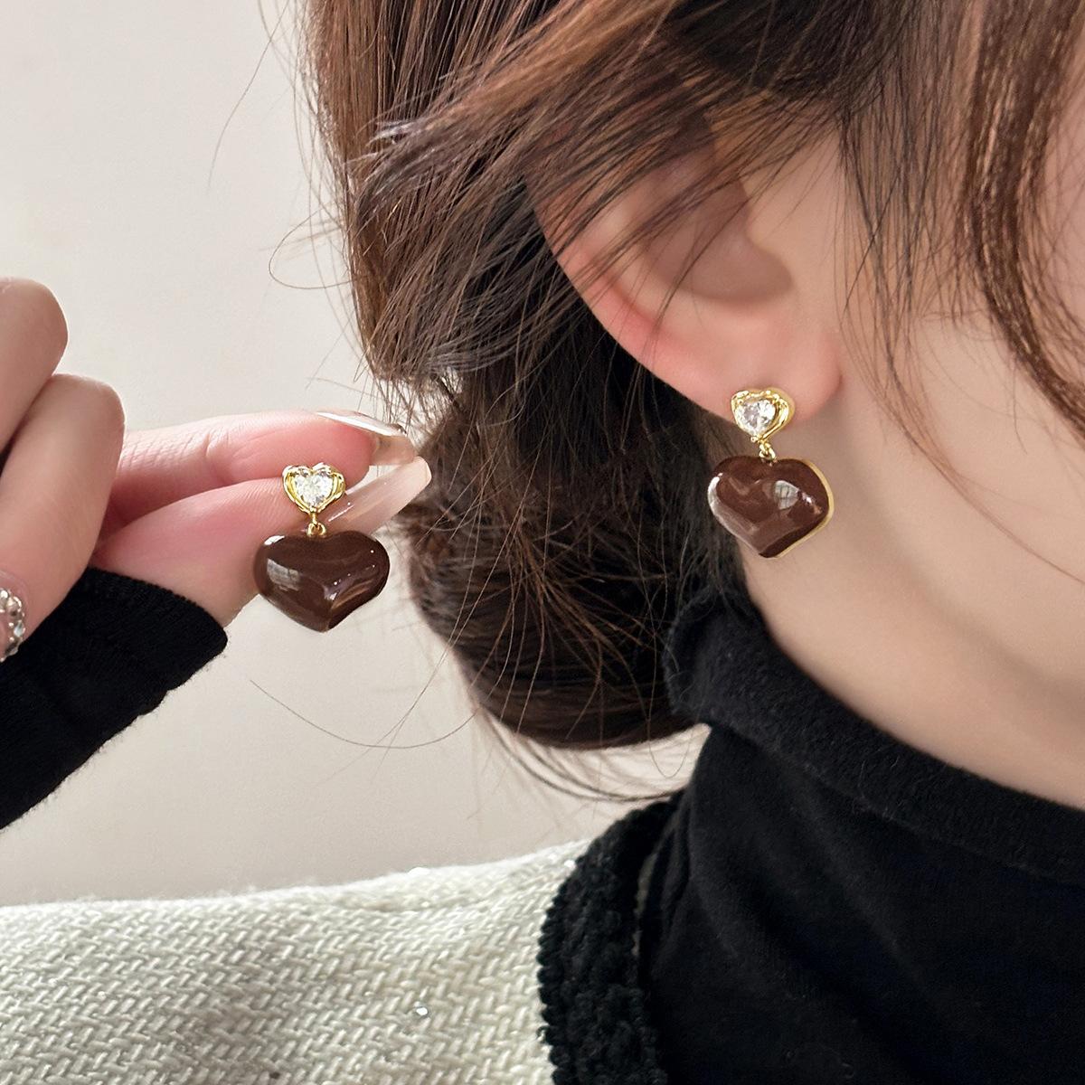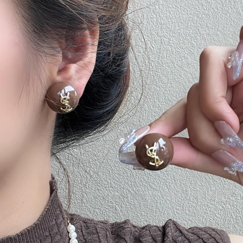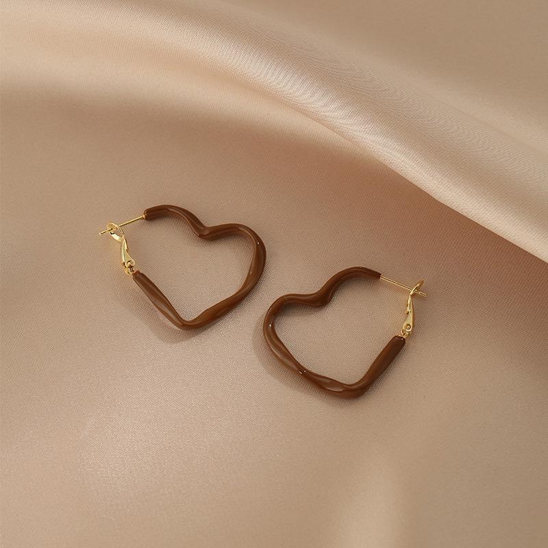 Aretes Geométricos Cuadrados Populares Color Café Aguja de Plata Nicho para Mujer Únicos de Alta Gama Aretes Elegantes Populares Color Café