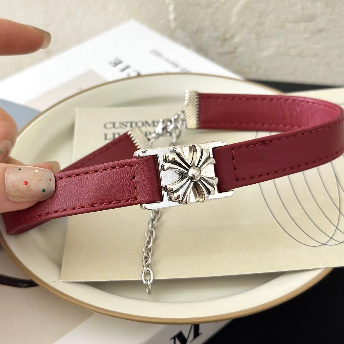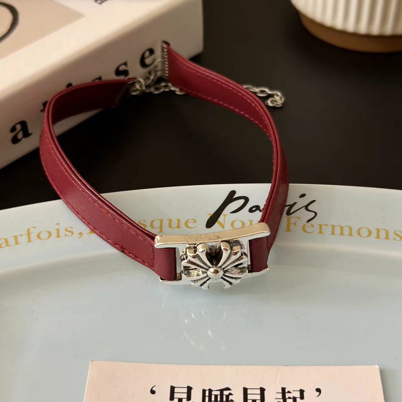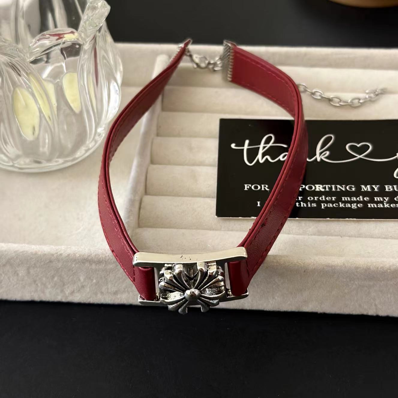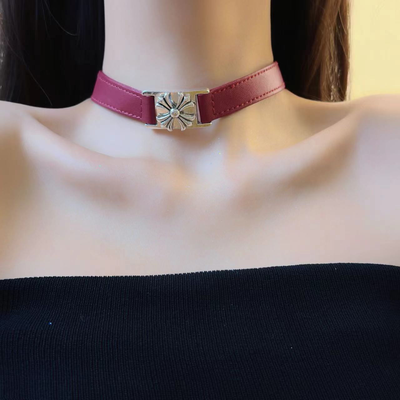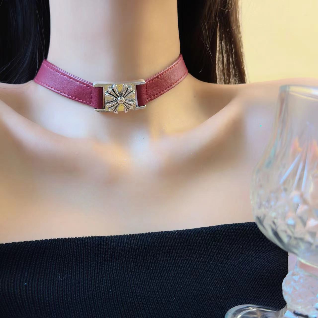 Collar Cruz de Cuero PU Rojo Vino Especiado Collar Collar Sexy Mujeres Gargantilla Cadena Clavícula Trendy Venta al por Mayor