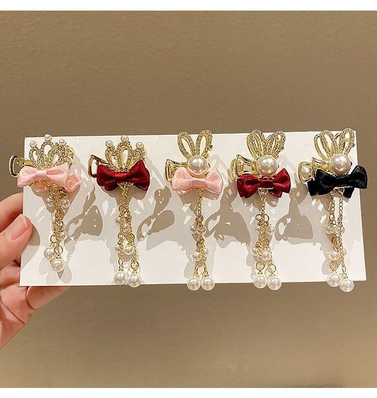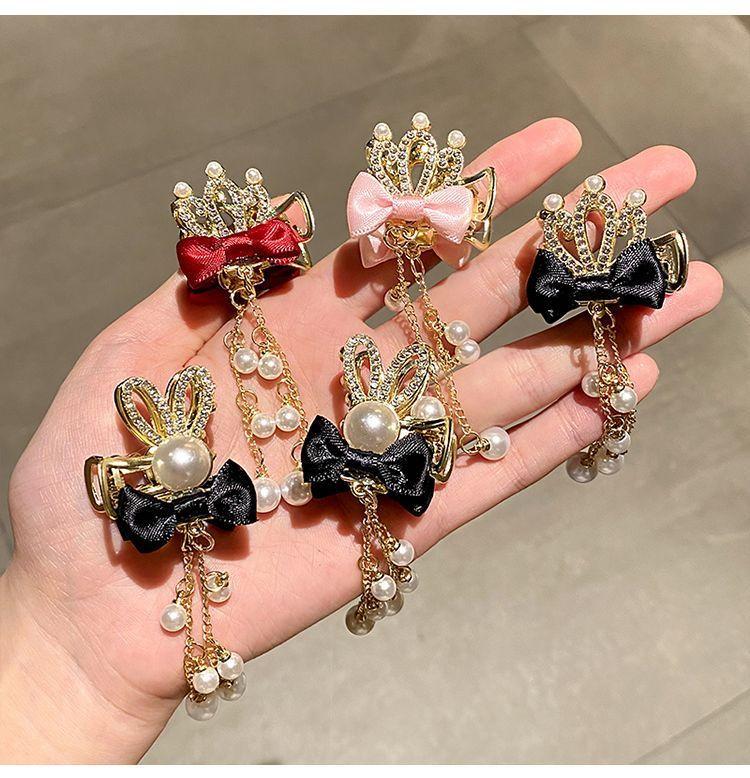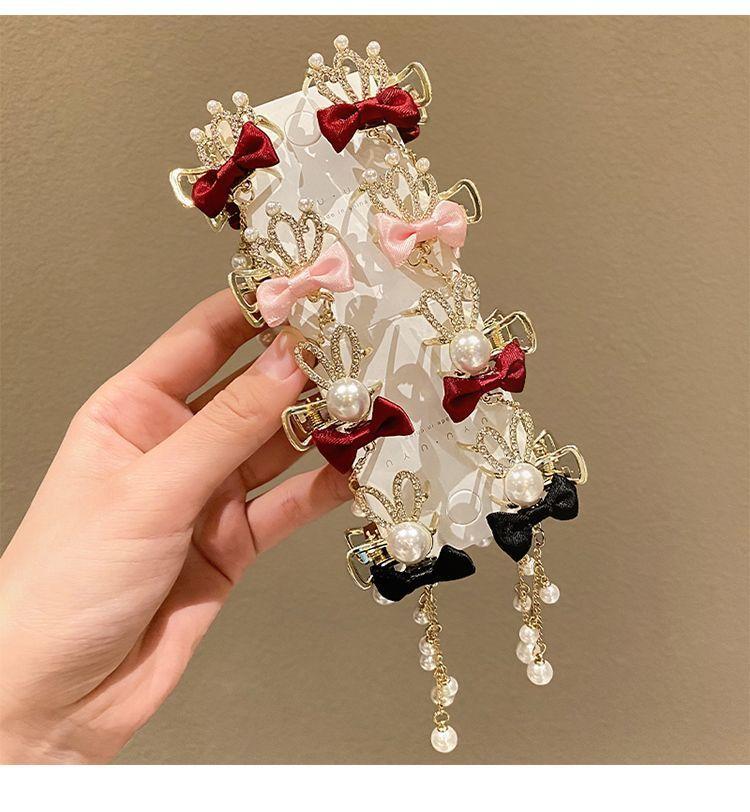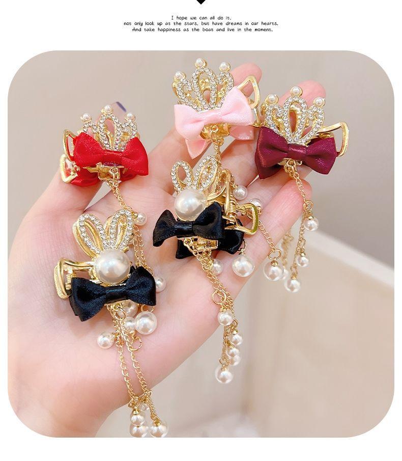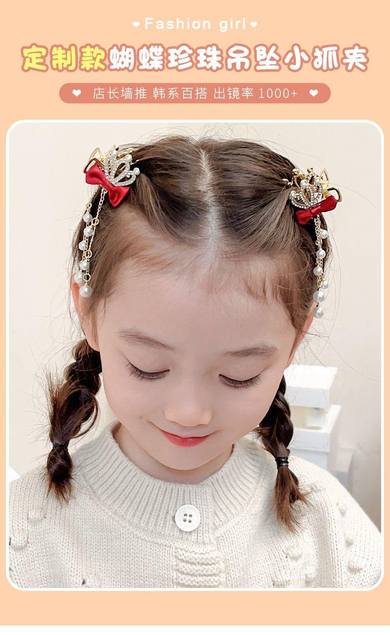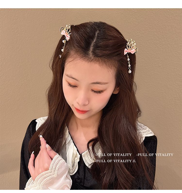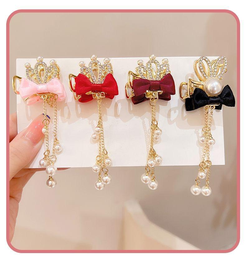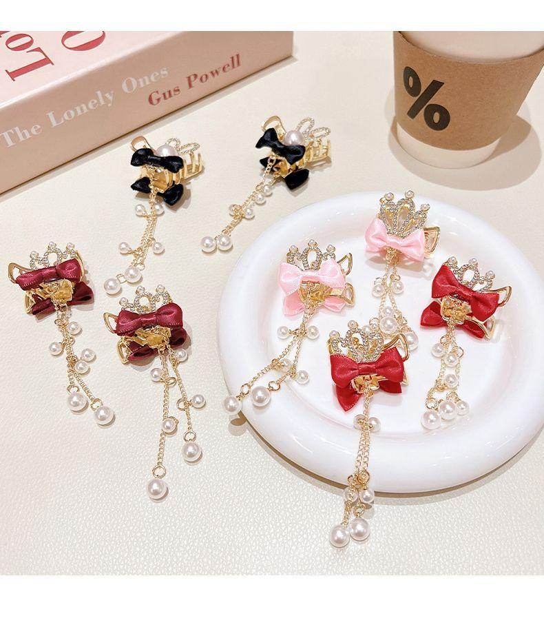 Corona infantil Perla lazo pinza para el cabello temperamento horquilla Princesa borla accesorios para el cabello niñas no dañan el cabello pinza adorno para la cabeza