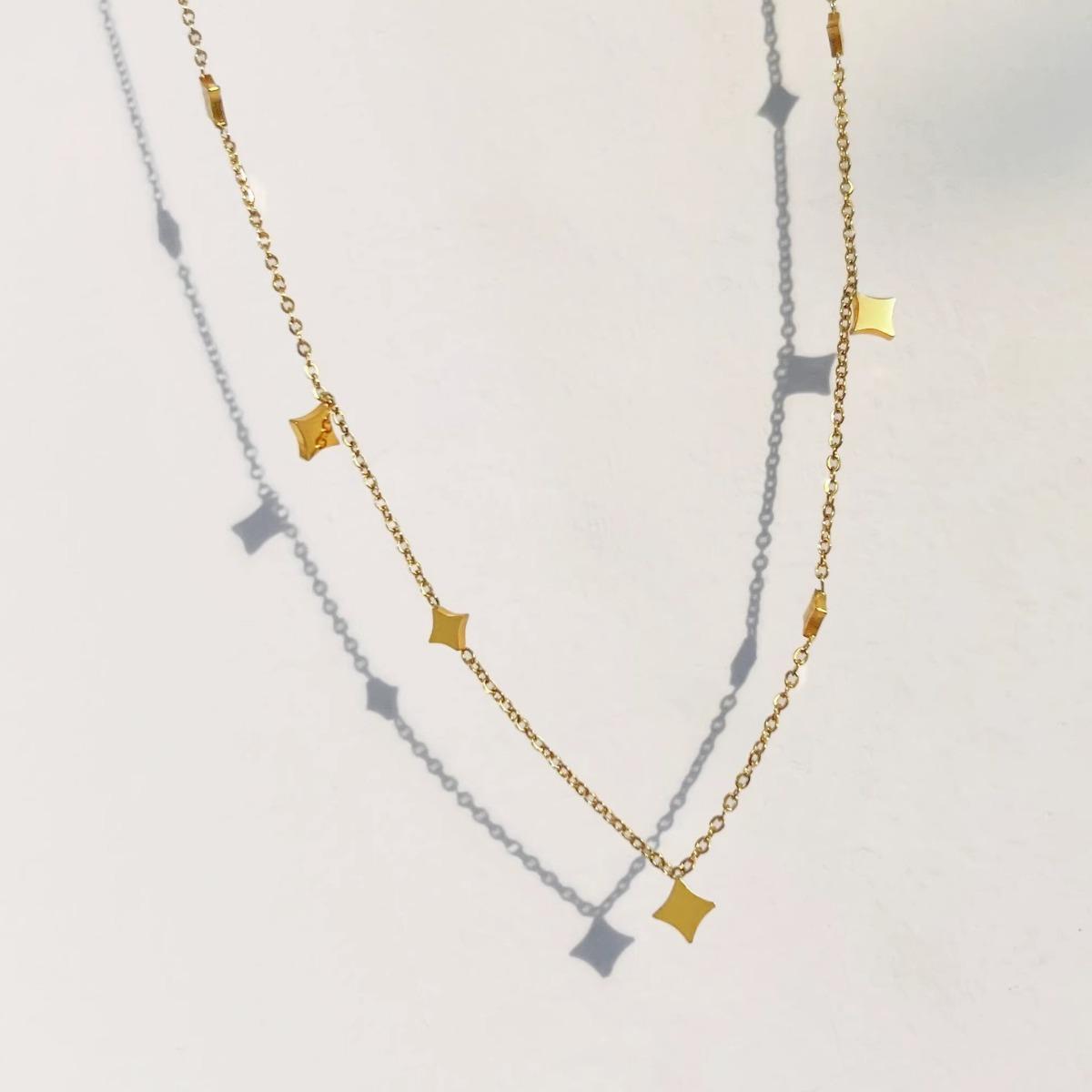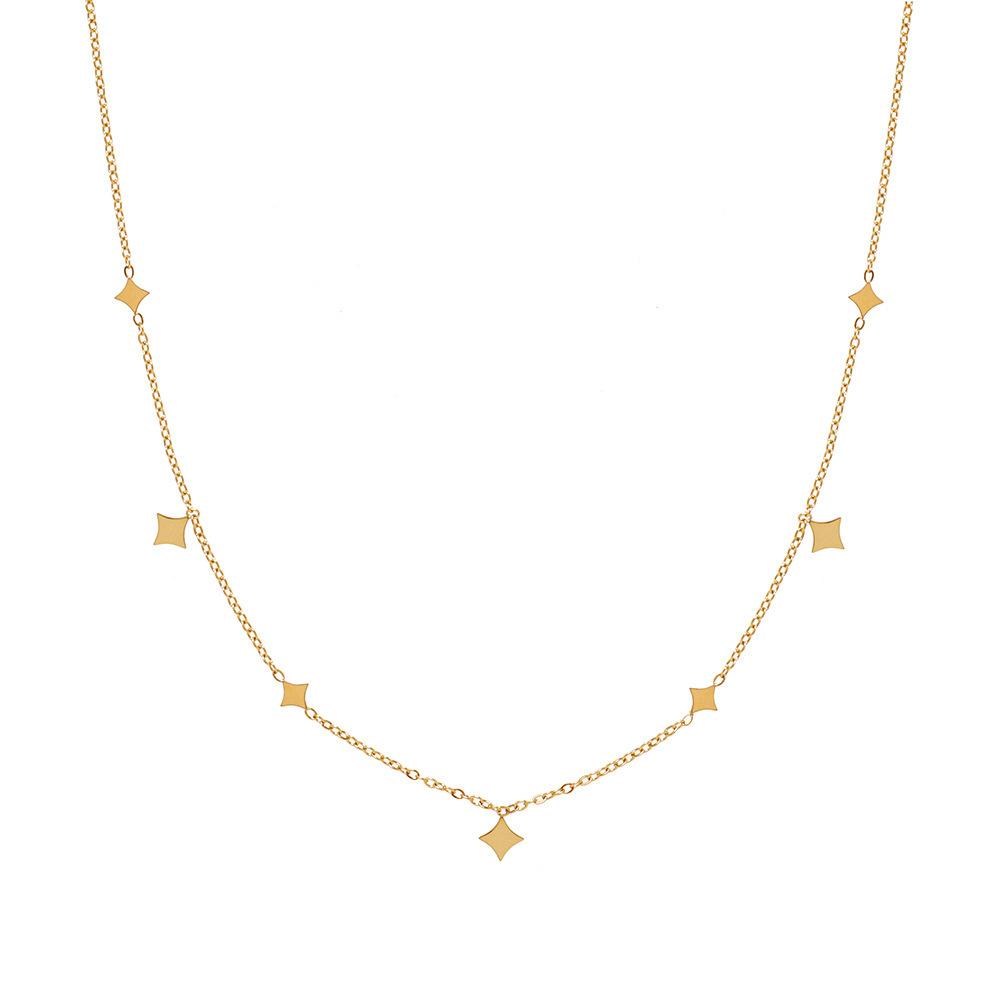 Collar de Estrella Pentagonal con Lentejuelas Francés Simple Elegante Exquisito Acero Titanio Color Chapado en Oro Refinada Cadena Clavícula Collar de Cadena de Estrella para Mujer