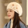 Novo chapéu coreano de outono e inverno com forro de lã, à prova de frio, quente, coelho, moda feminina, boina de pérola, fornecimento direto transfronteiriço