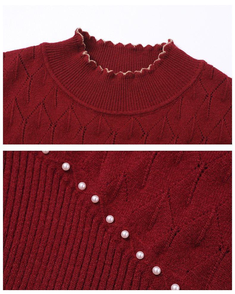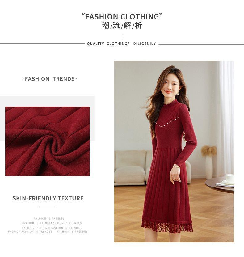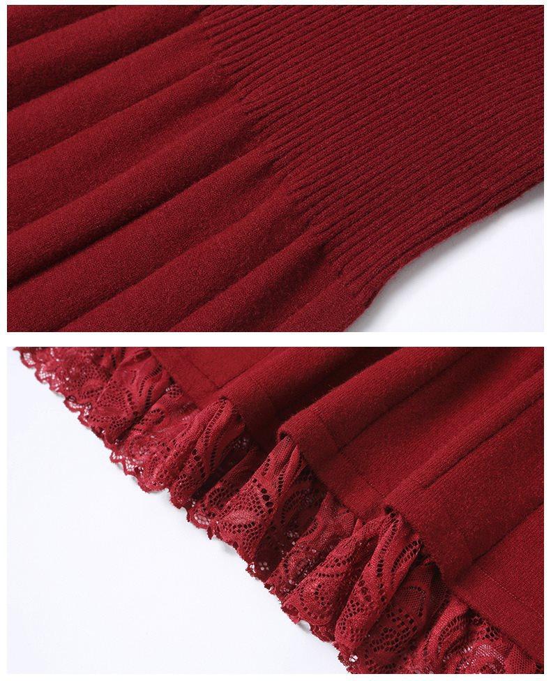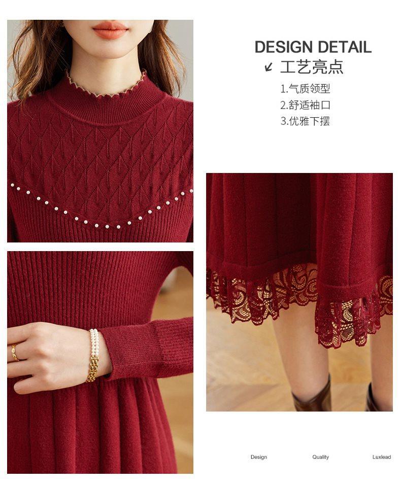 Compra Vestido de punto elegante de otoño e invierno, nuevo, de color liso, cintura alta, manga larga, con costuras de encaje, corte A, base tipo suéter. al por mayor en Joom.pro