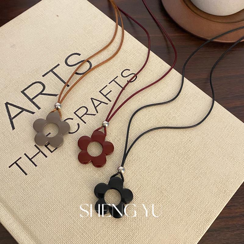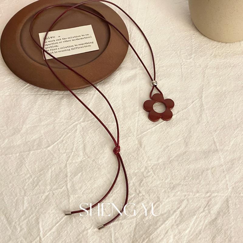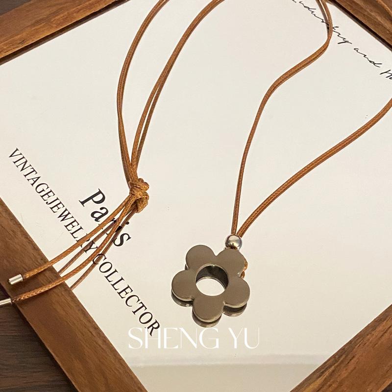 Collar de cuerda de cera con flores combinables de estilo coreano para mujer, cadena de cuello con diseño de nicho, cadena para el sudor, 2024