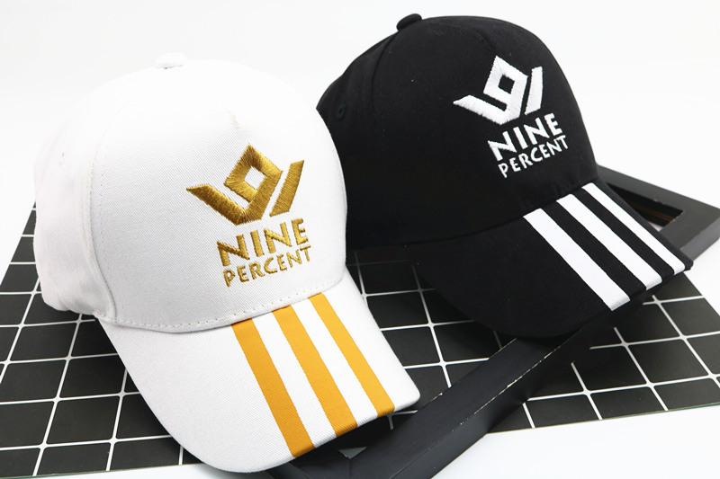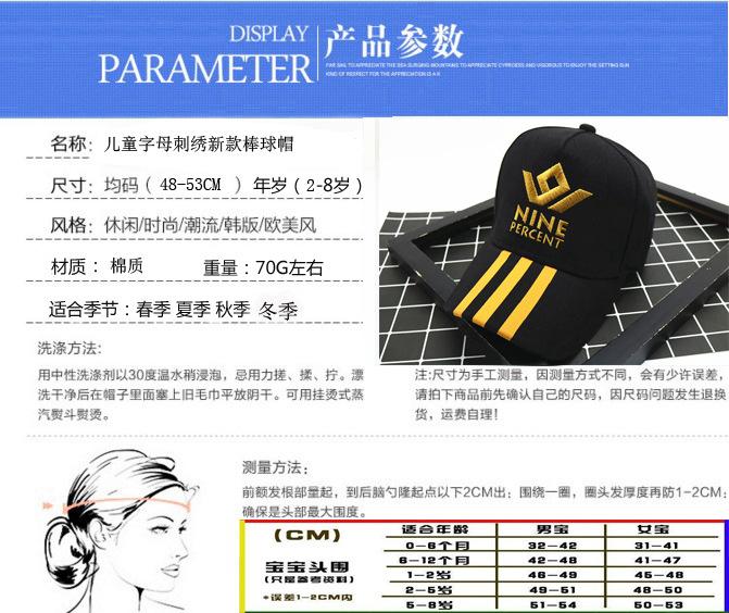 Sombrero versión coreana ins gorra de NUEVE letras para niños bordado con logo dorado y plateado gorra de béisbol para exteriores gorra hip-hop para niño