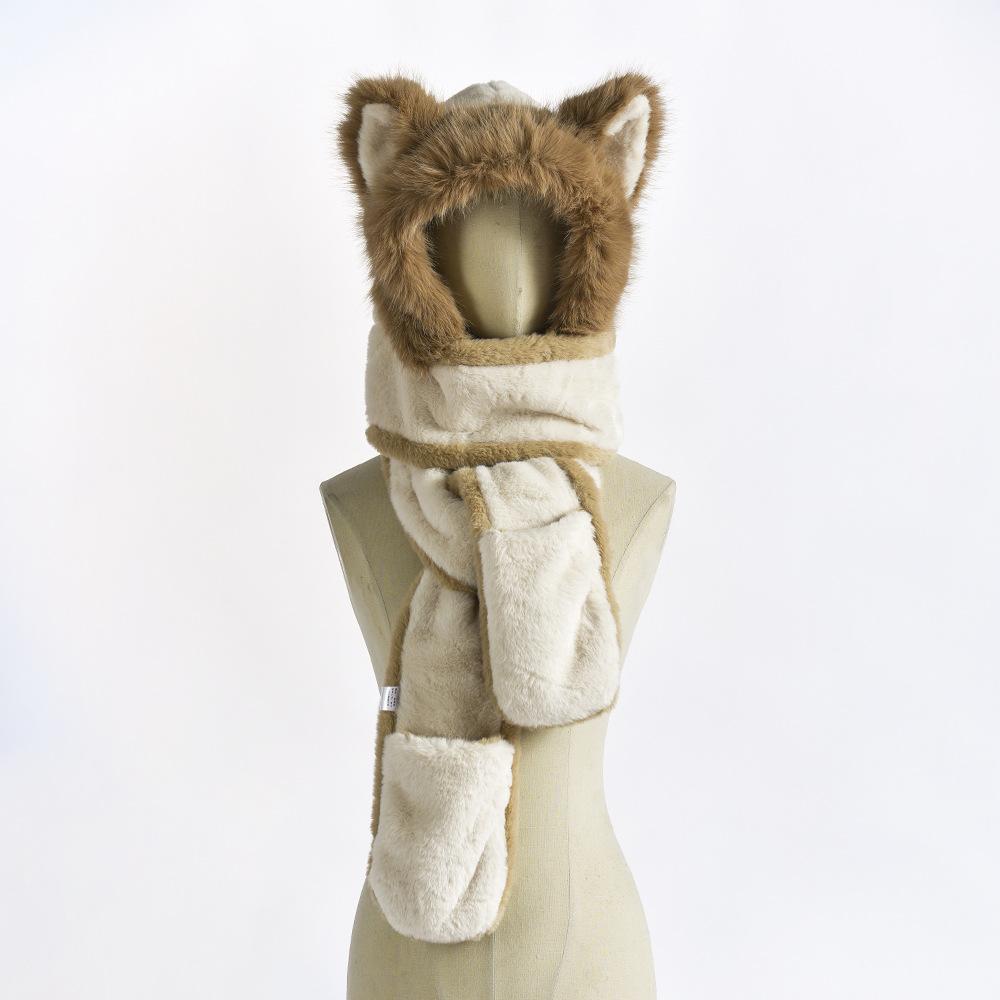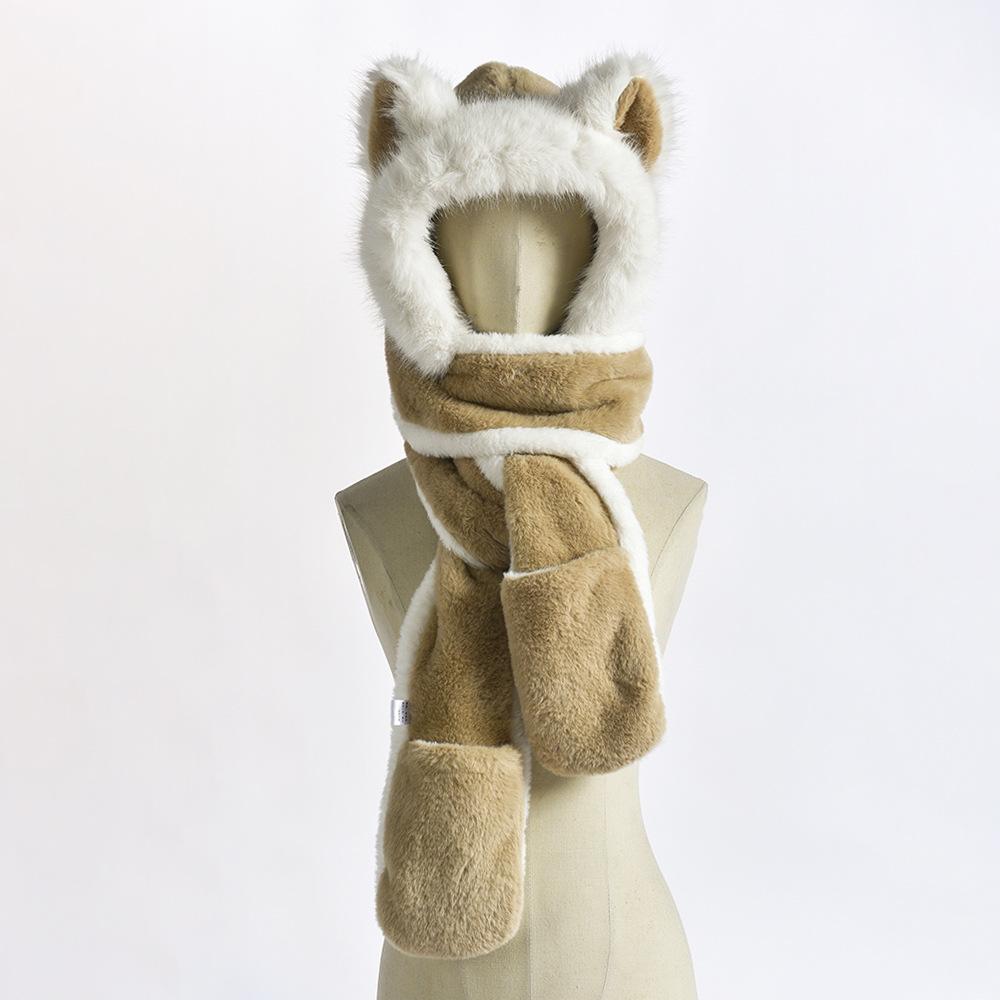 Las orejas y mejillas de zorro están cubiertas de pelo extendido, y el interior es de doble grosor, lo cual es súper cálido. El pelo es delicado y suave y no pica la piel.