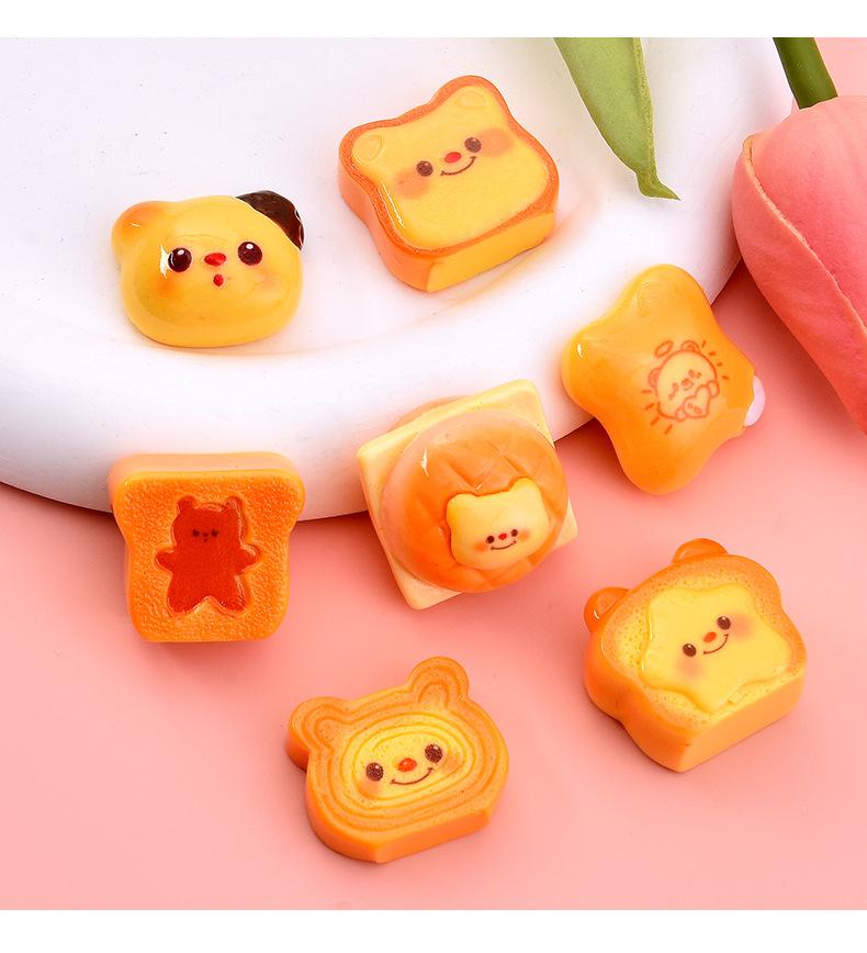 Caricatura Oso de Mantequilla Pan Resina Comida Juego Hecho a Mano DIY Refrigerador Carcasa para Teléfono Móvil Horquilla Coletero Accesorios