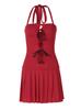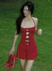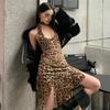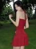 Ropa de mujer europea y americana 2025 verano nuevo deseo puro chica hot cuello halter profundo V escote bajo vestido sin mangas color sólido de alta gama