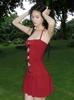 Ropa de mujer europea y americana 2025 verano nuevo deseo puro sin espalda escote bajo con cordones malla transpirable suelto vestido de tirantes para mujer