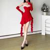Ropa de mujer europea y americana 2025 otoño nueva moda plisado cuello oblicuo hombros descubiertos moderno casual sexy vestido de cadera femenino