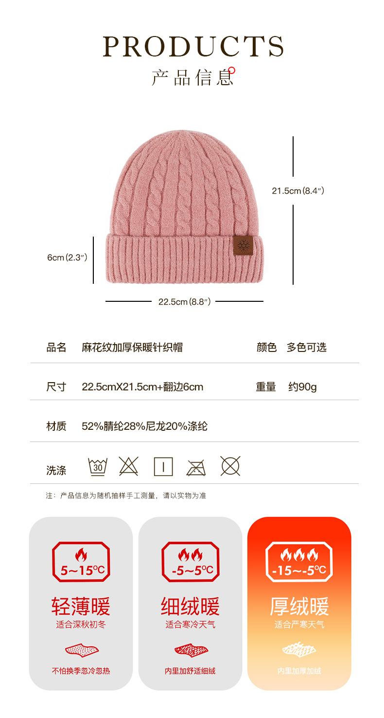 Compra Gorros de Invierno para Hombre y Mujer, Gorros Tejidos con Patrón de Cáñamo, Cálidos y Versátiles, Protección para los Oídos a Prueba de Frío, Gorros de Lana Gruesos con Dobladillo de Terciopelo al por mayor en Joom.pro