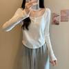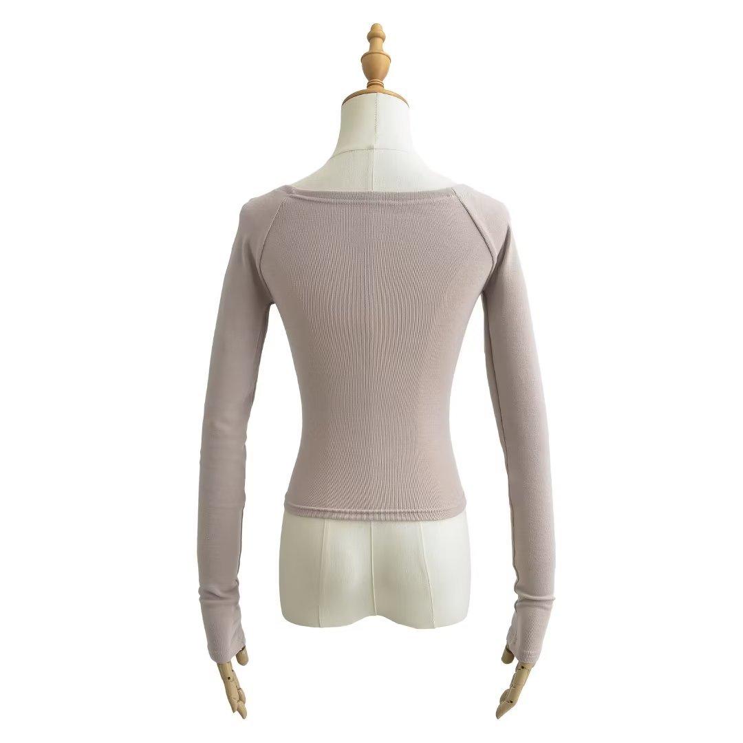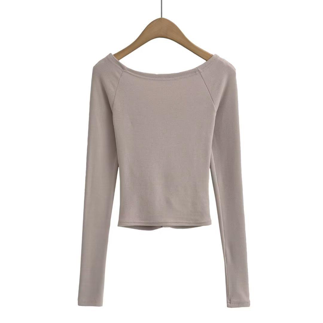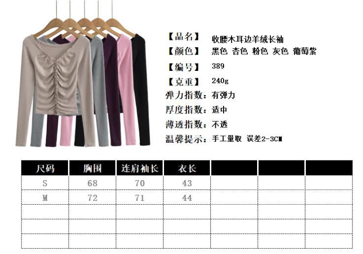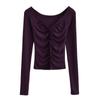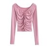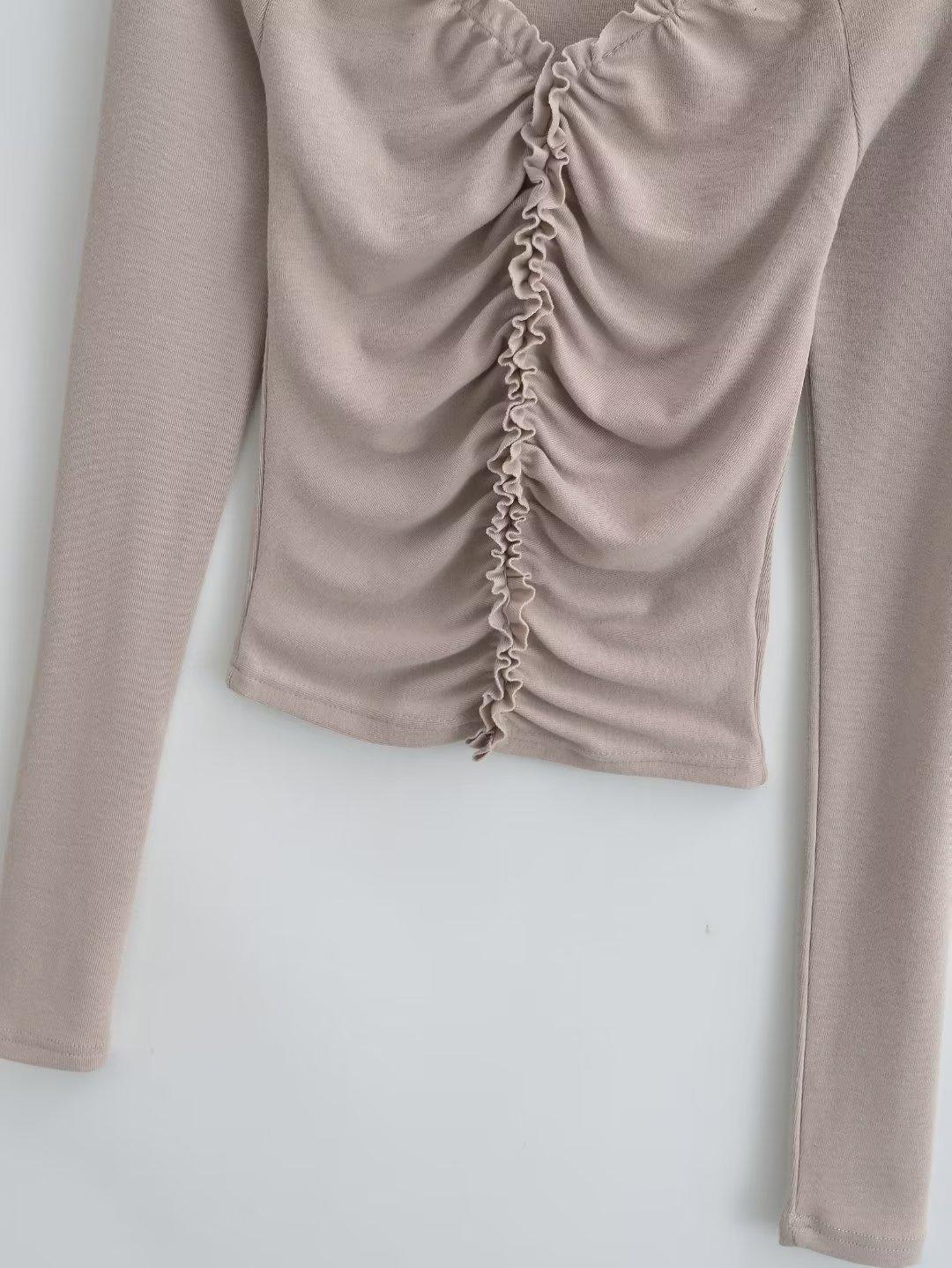 Camiseta de manga larga con escote en V profundo, elegante y corta, estilo chica sexy de otoño e invierno de 2023, con pliegues en el pecho y cintura alta