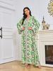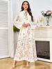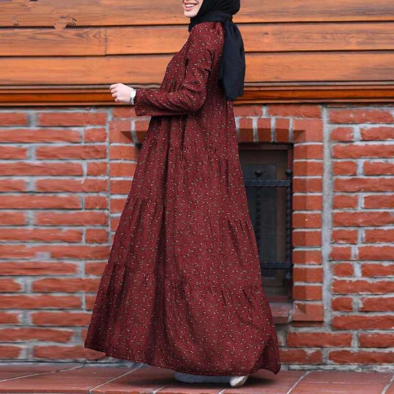 (Tres Colores y Tamaños) Vestido Floral Retro de Manga Larga Estampado para Mujer de Oriente Medio Estilo Retro Elegante