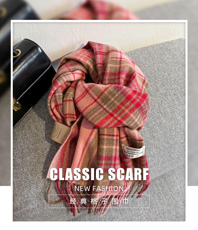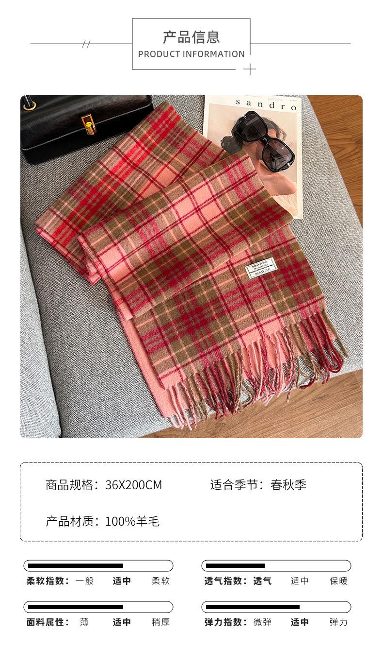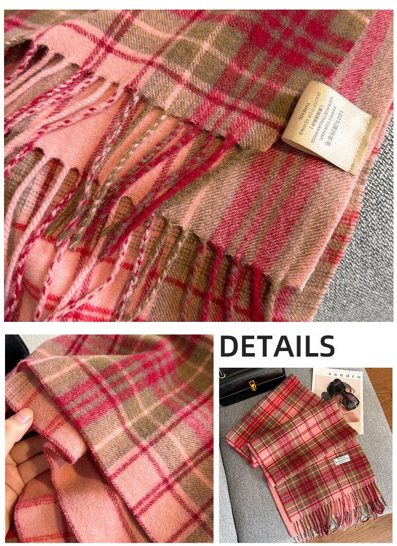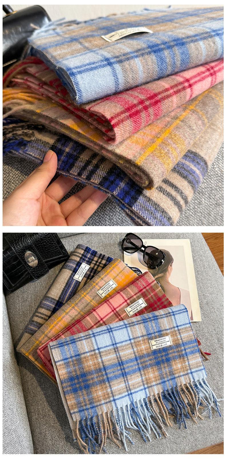 Bufanda nueva para mujer, otoño e invierno, gruesa y cálida, chal a cuadros de lana 100% pura para estudiantes y parejas, moda coreana, estilo británico.
