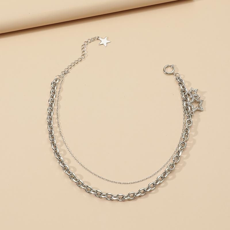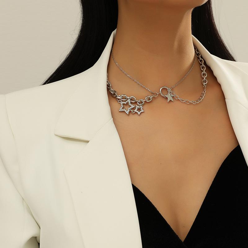 Tendencia de Moda Transfronteriza Cadena de Clavícula Multicapa Personalidad Simple Europea y Americana Diseño Nicho Collar Estrella de Cinco Puntas
