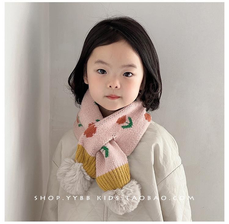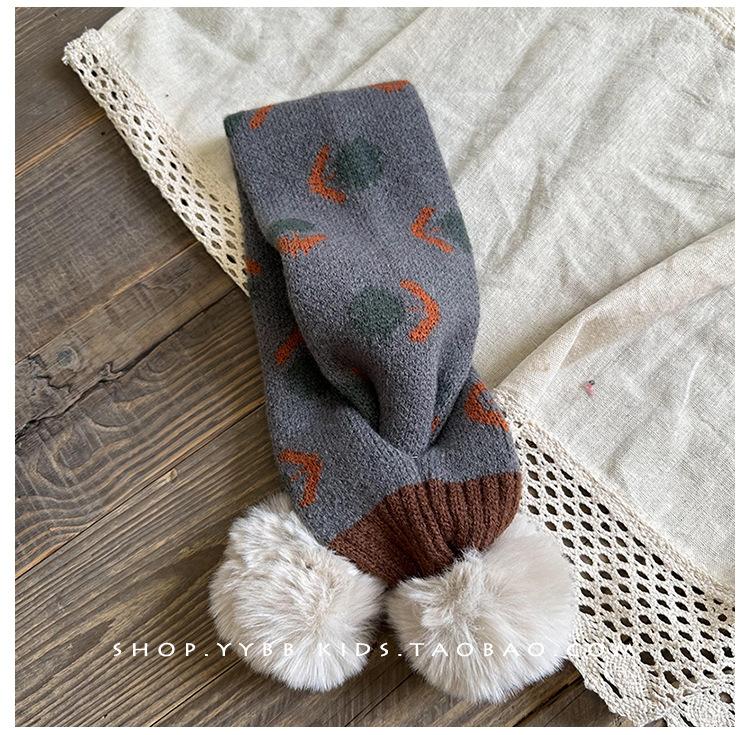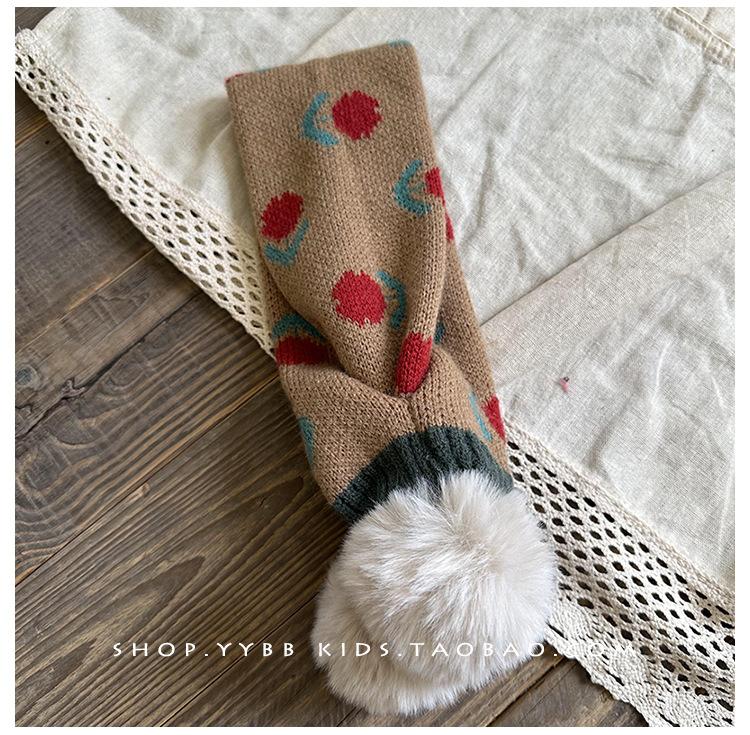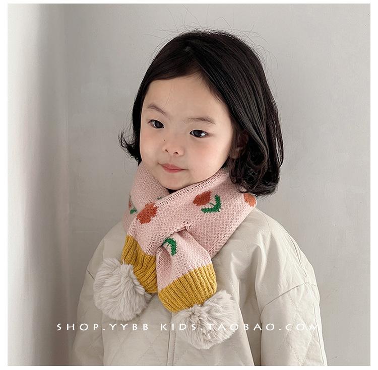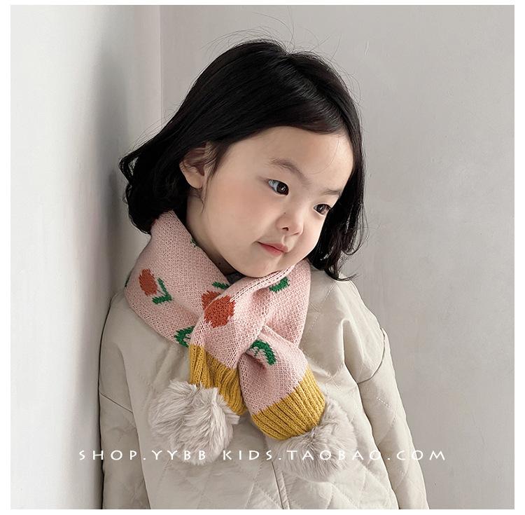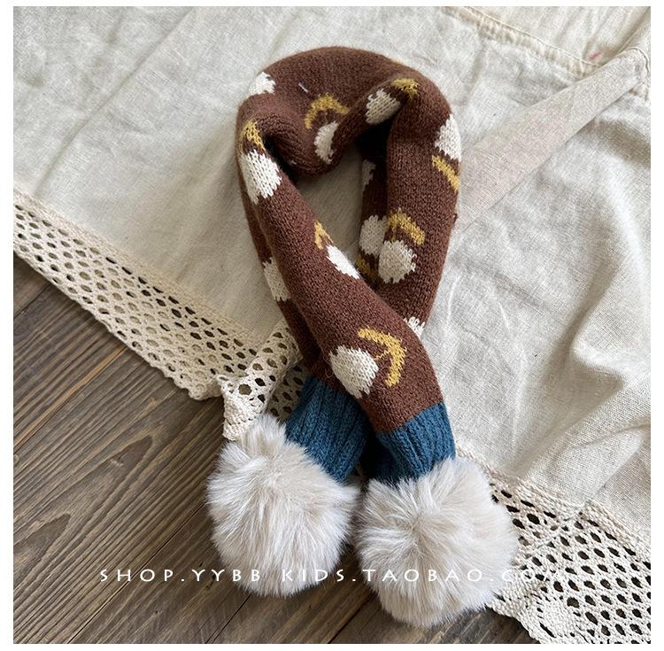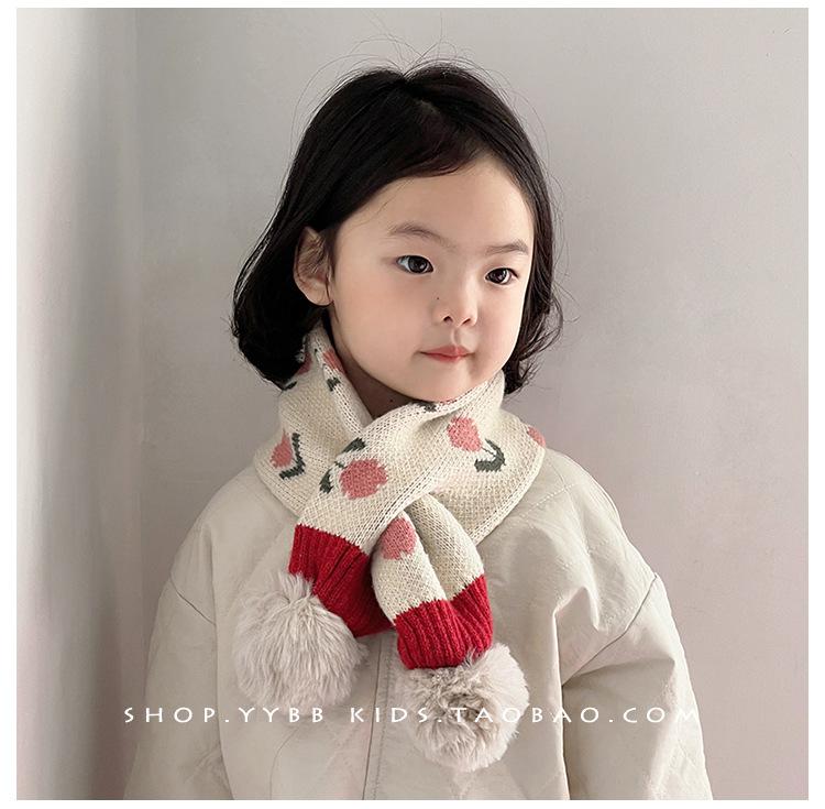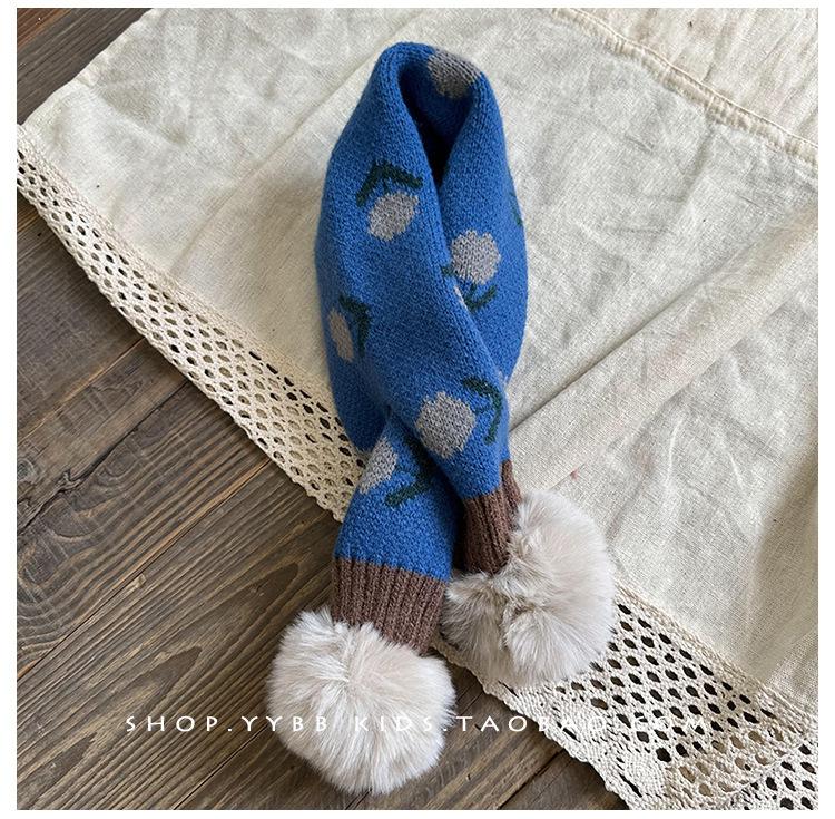 Bufanda de lana cálida para bebé coreana, de otoño e invierno, bonita, de doble bola, resistente al viento, con cuello cruzado de punto para niños y niñas