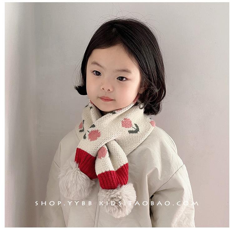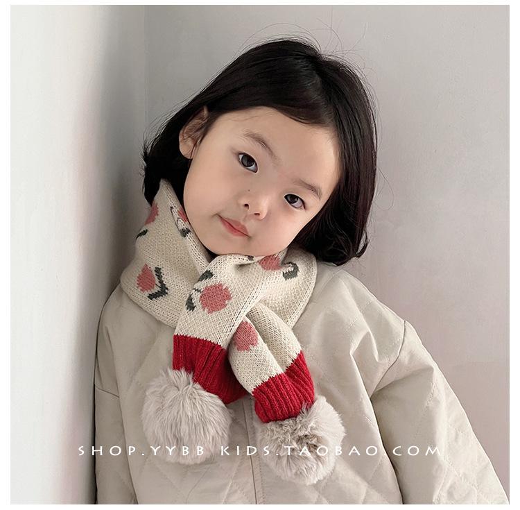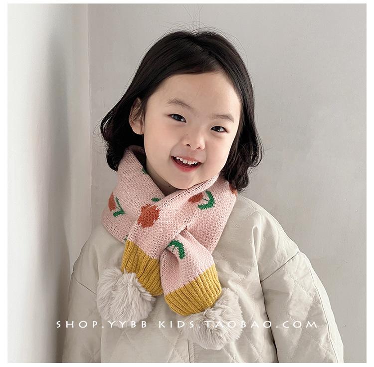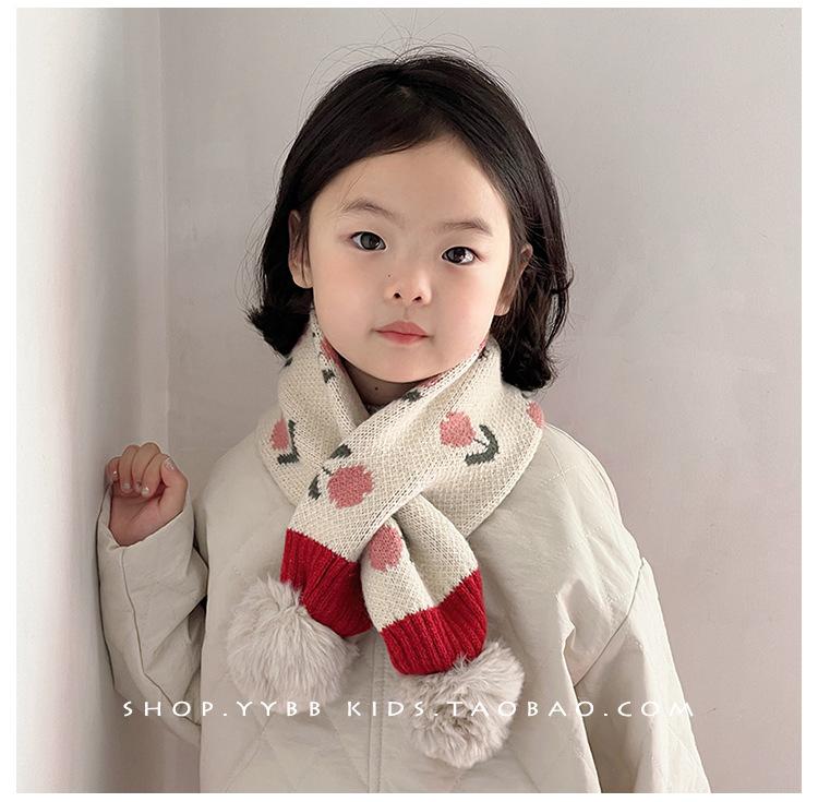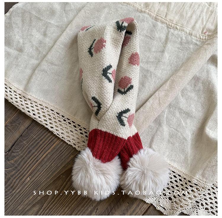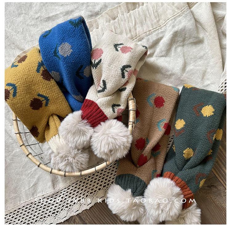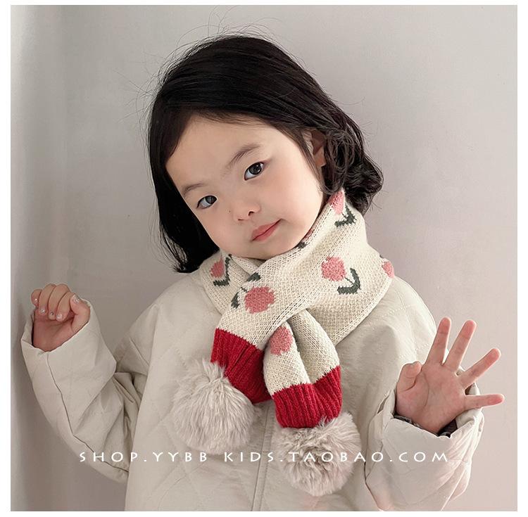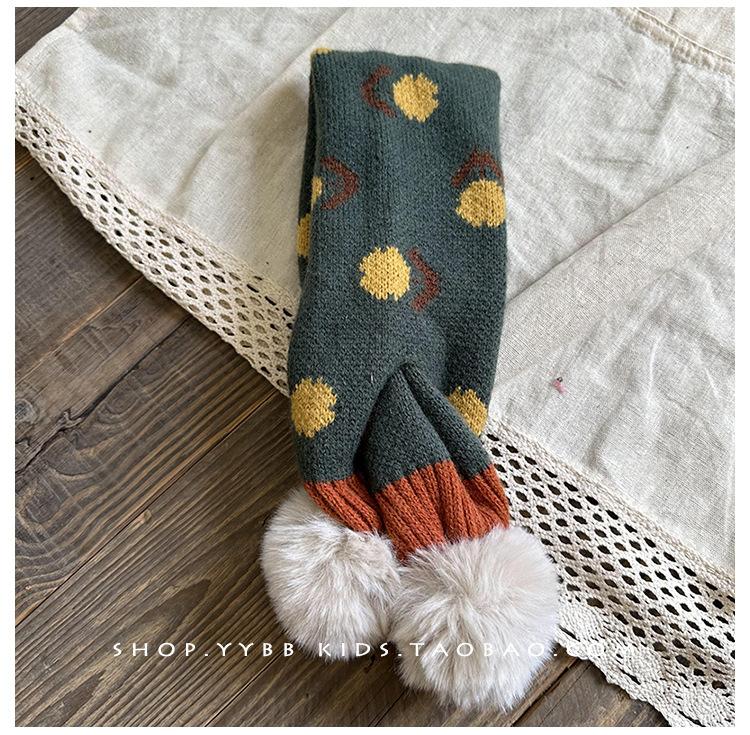 Bufanda de lana cálida para bebé coreana, de otoño e invierno, bonita, de doble bola, resistente al viento, con cuello cruzado de punto para niños y niñas