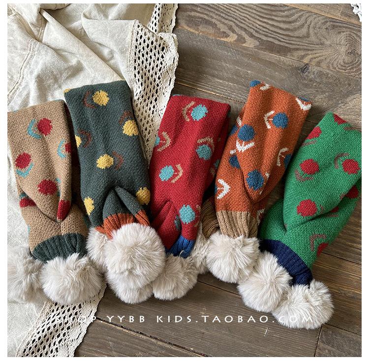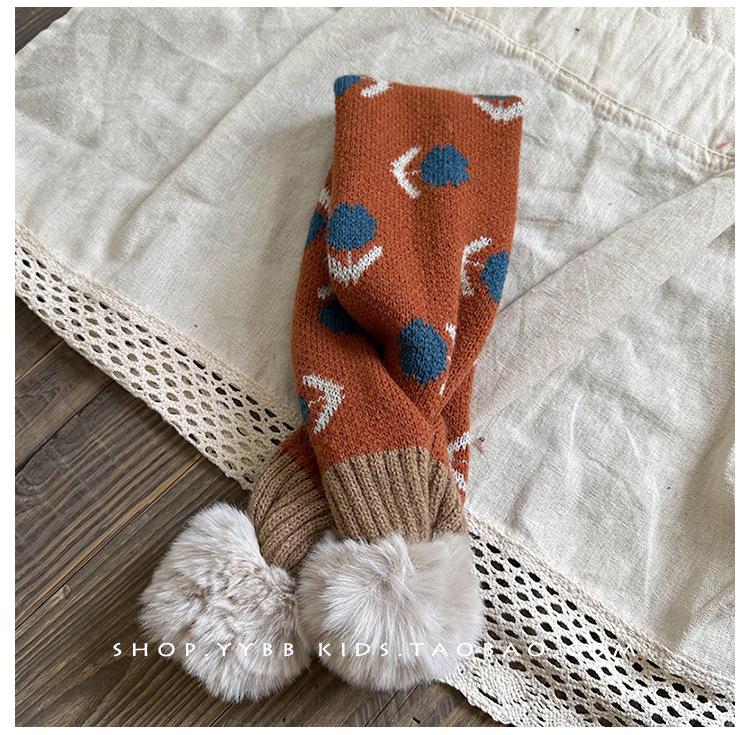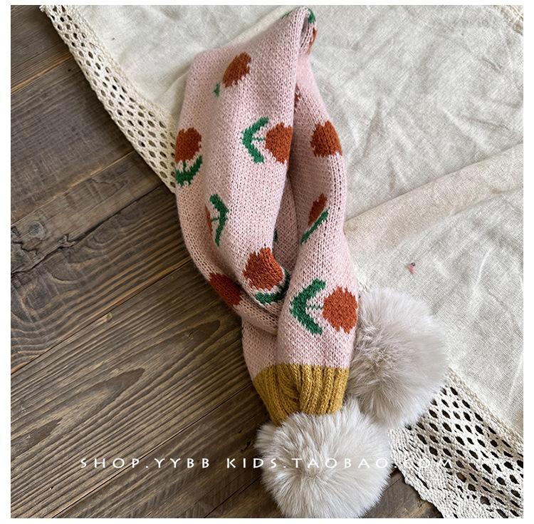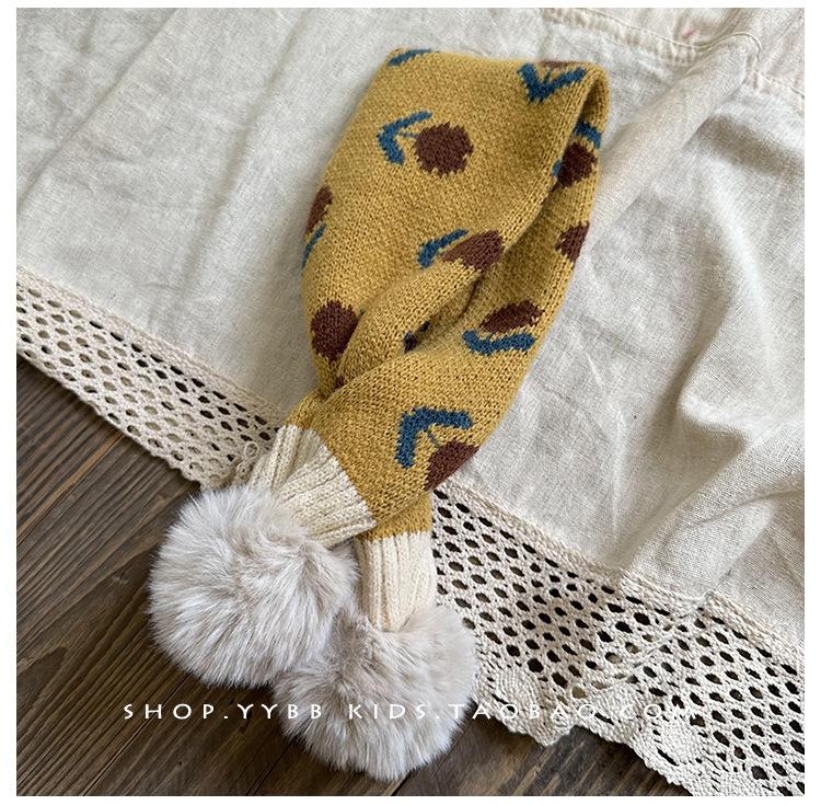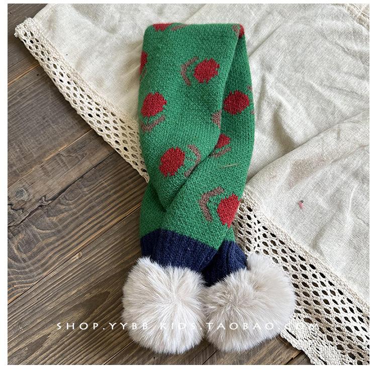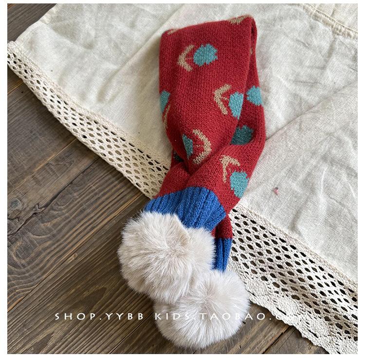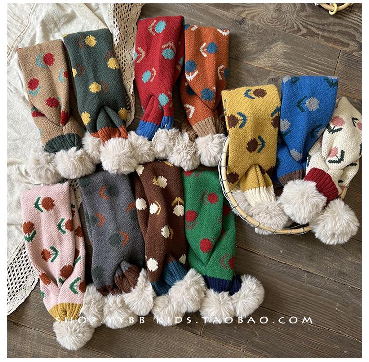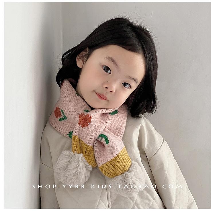 Bufanda de lana cálida para bebé coreana, de otoño e invierno, bonita, de doble bola, resistente al viento, con cuello cruzado de punto para niños y niñas