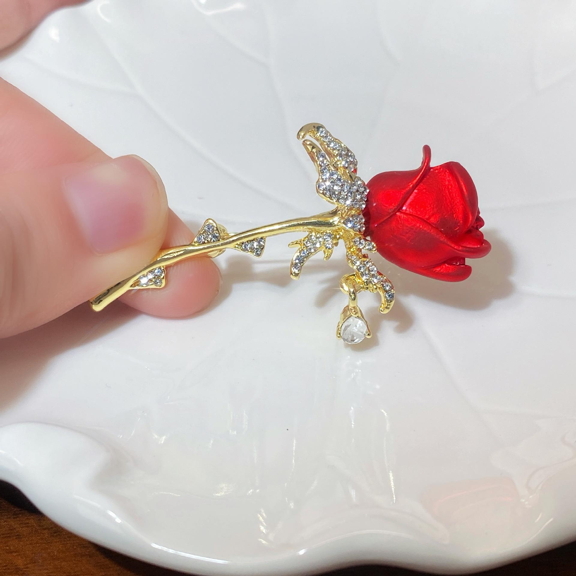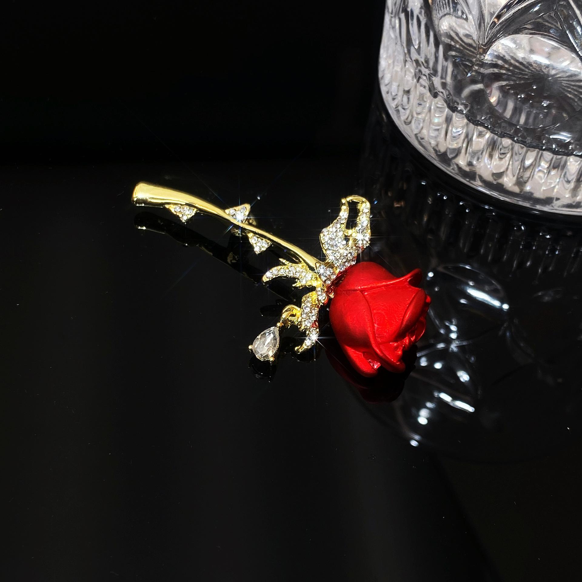 Compra Broche de rosa de diamantes europeo y americano, temperamento simple, elegante, moda de alta gama, abrigo, ramillete, accesorios. al por mayor en Joom.pro