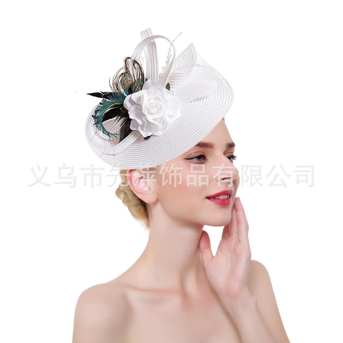 Nuevo sombrero de copa de Amazon, sombrero de novia europeo y americano con plumas y flores, sombrero de malla vintage.
