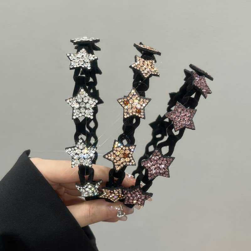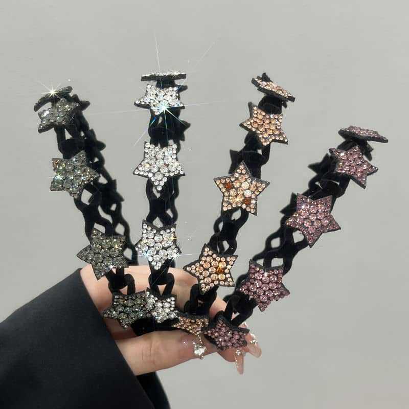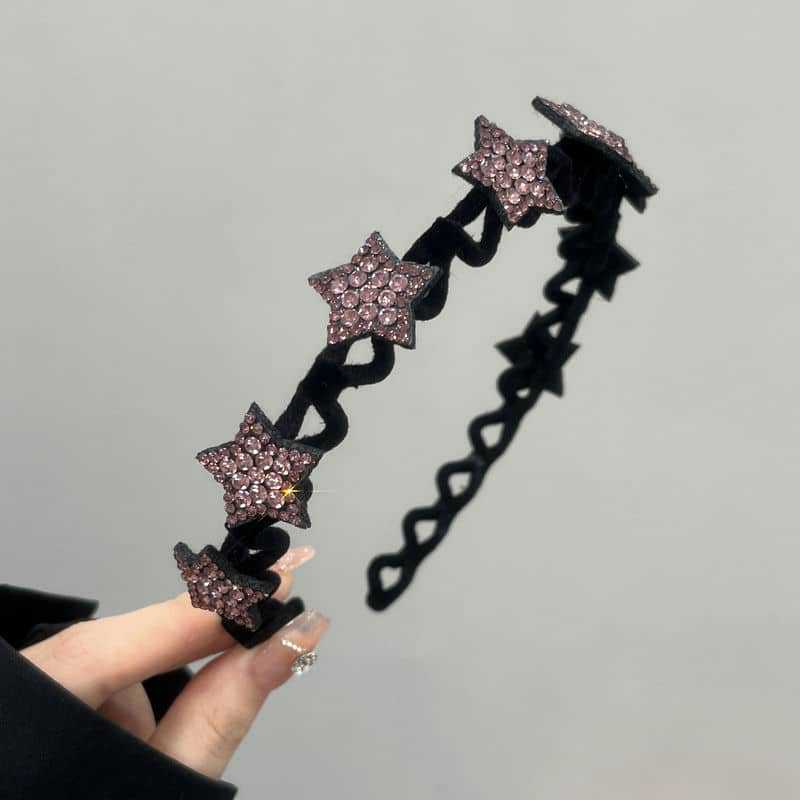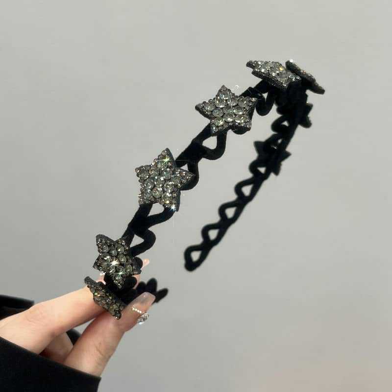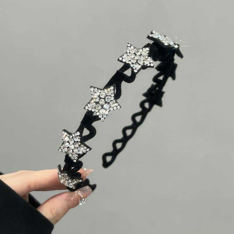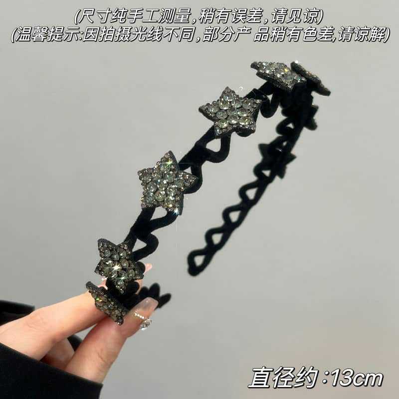 Banda para el cabello con textura rota y estrellas de diamantes de imitación de celebridades de Internet, banda para la cabeza de cráneo alto, estilo coreano, pinzas para el cabello, paquete de accesorios para el cabello