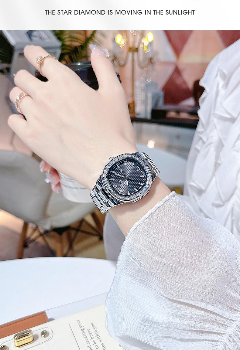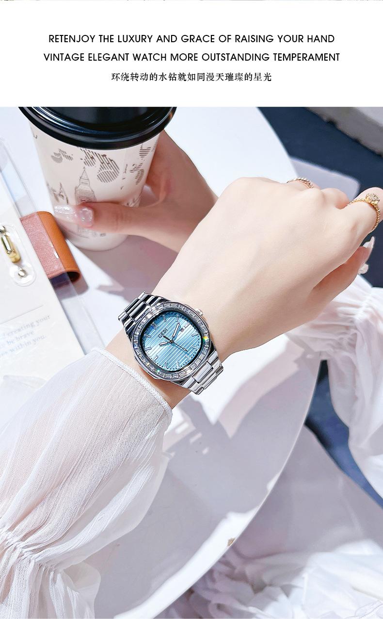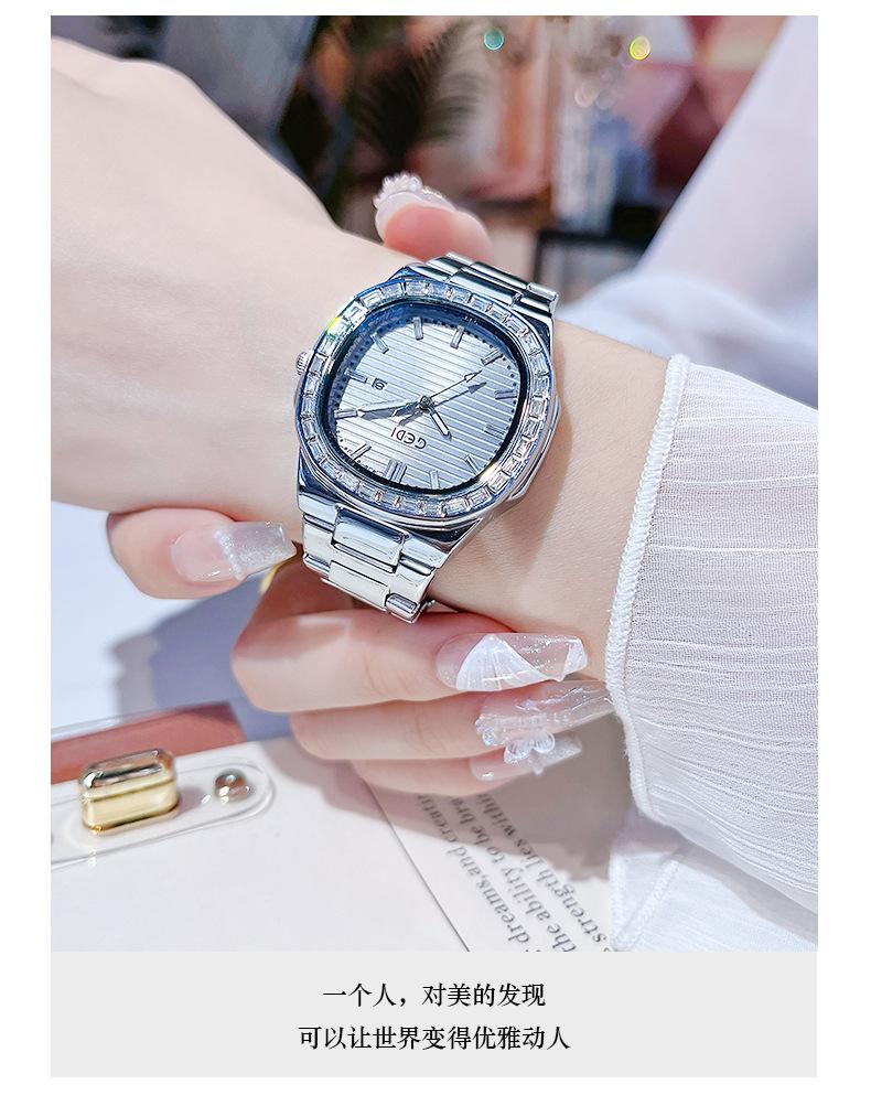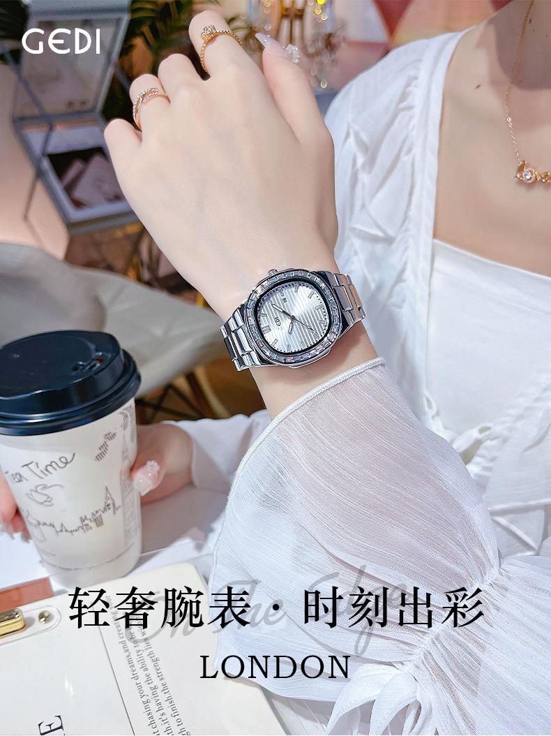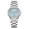 Reloj Goldie Oval Nautilus para mujer, moderno y elegante, de acero inoxidable, de cuarzo y con calendario y diamantes.