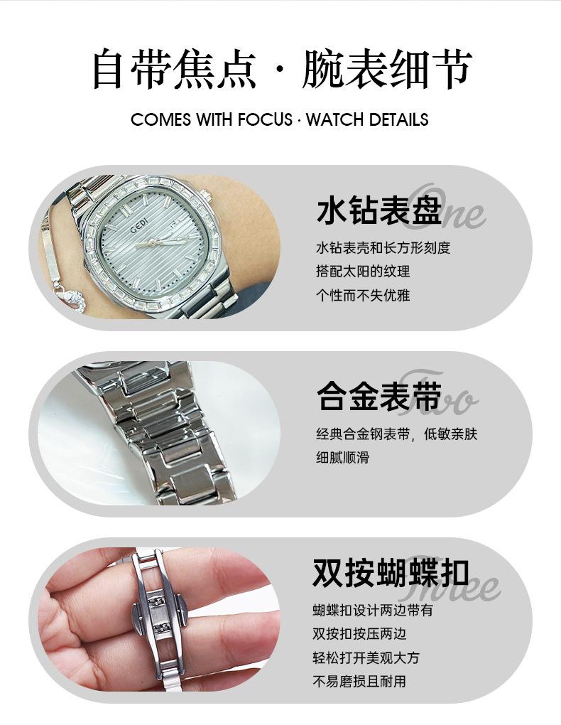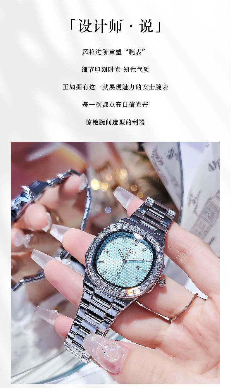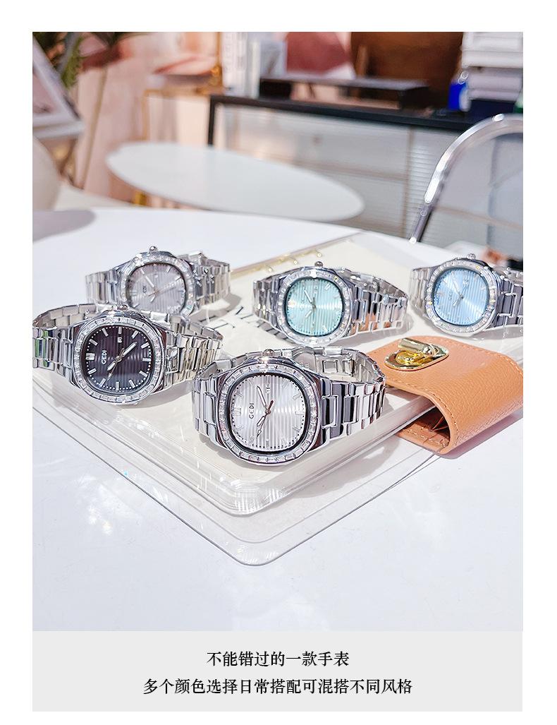 Reloj Goldie Oval Nautilus para mujer, moderno y elegante, de acero inoxidable, de cuarzo y con calendario y diamantes.