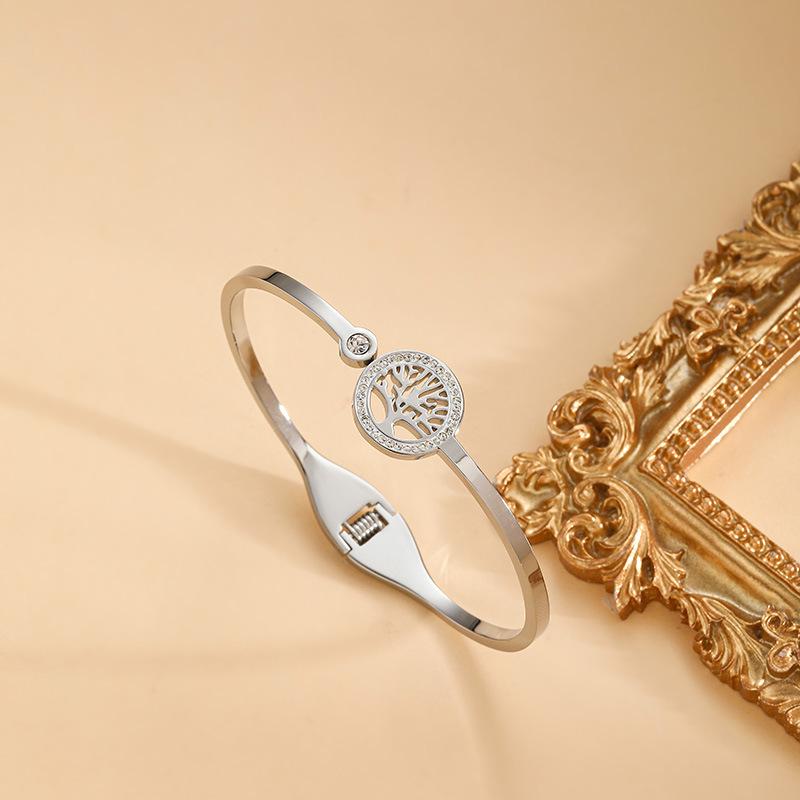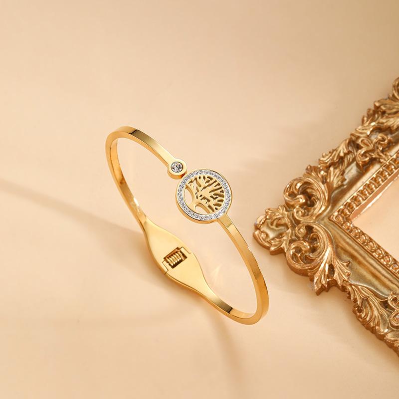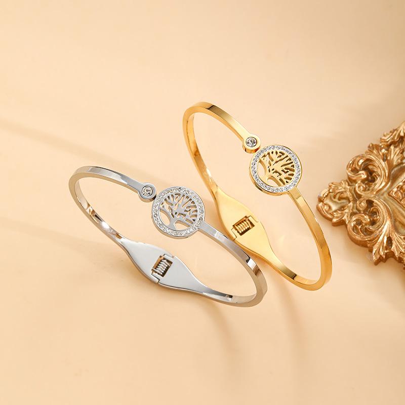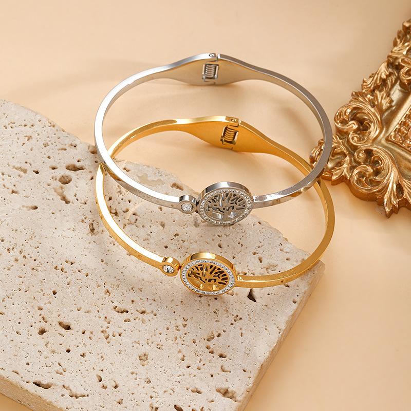 Versión coreana de nicho ins acero titanio chapado en oro 18K pulsera de acero titanio de árbol hueco con diamantes pulsera abierta de moda versátil
