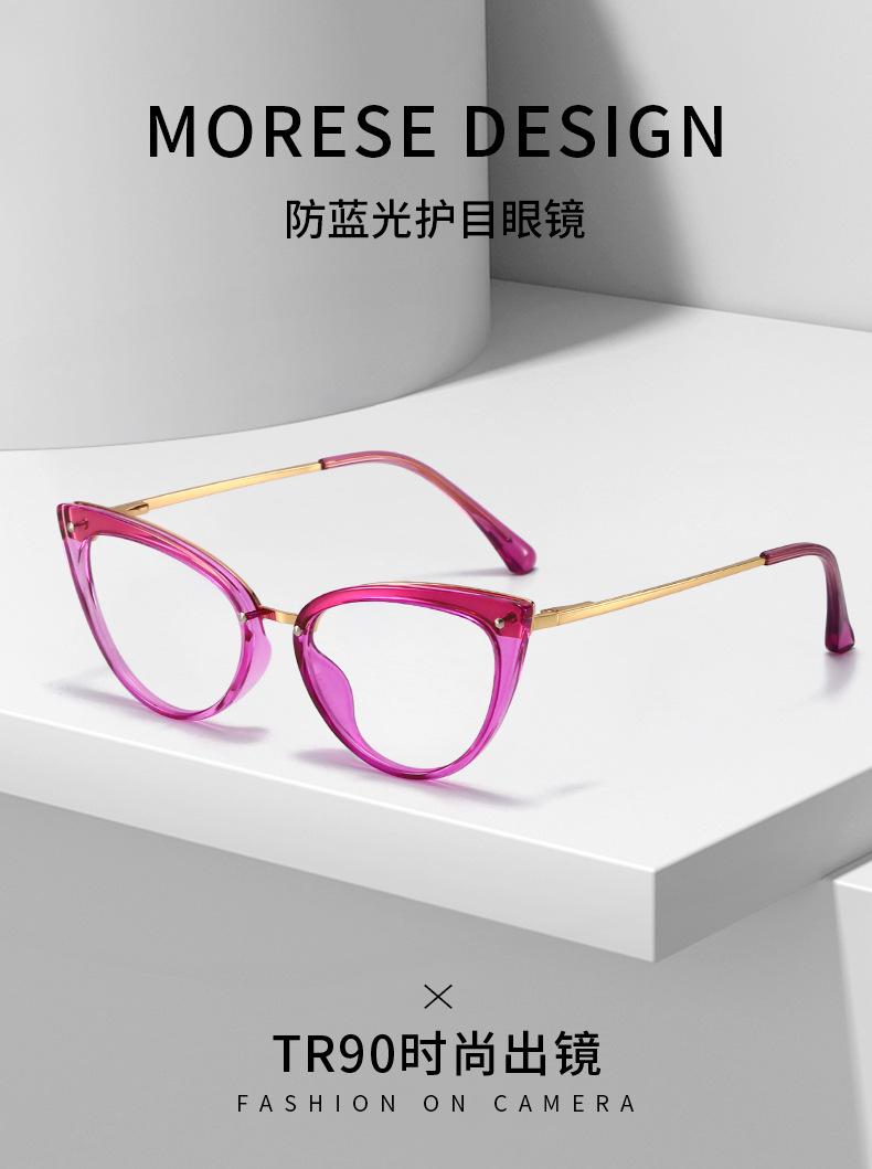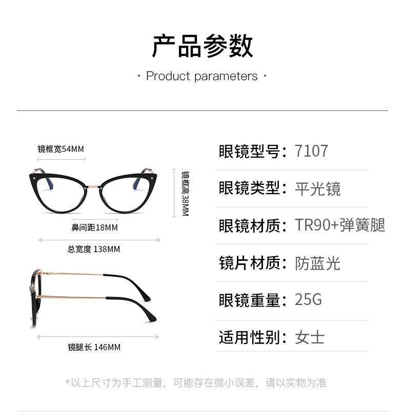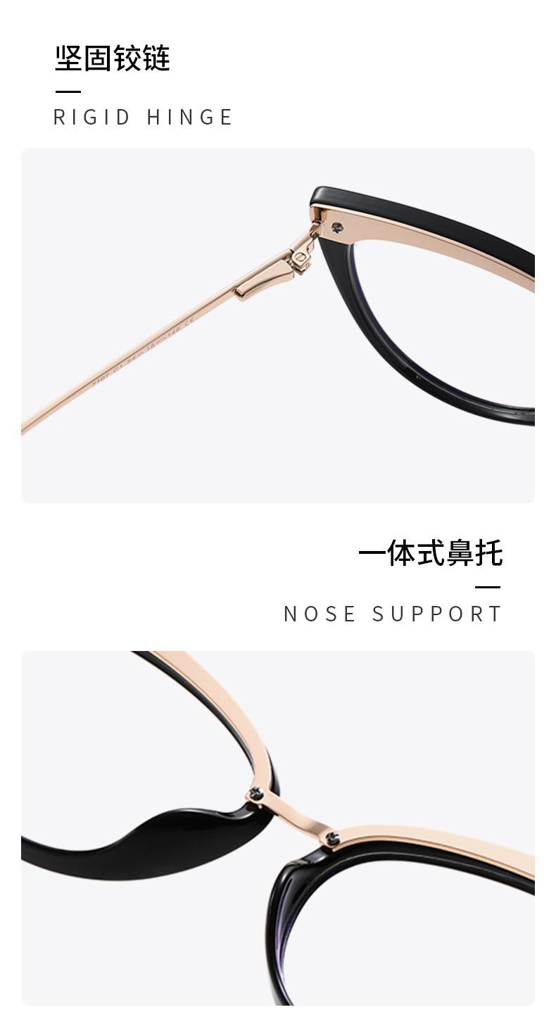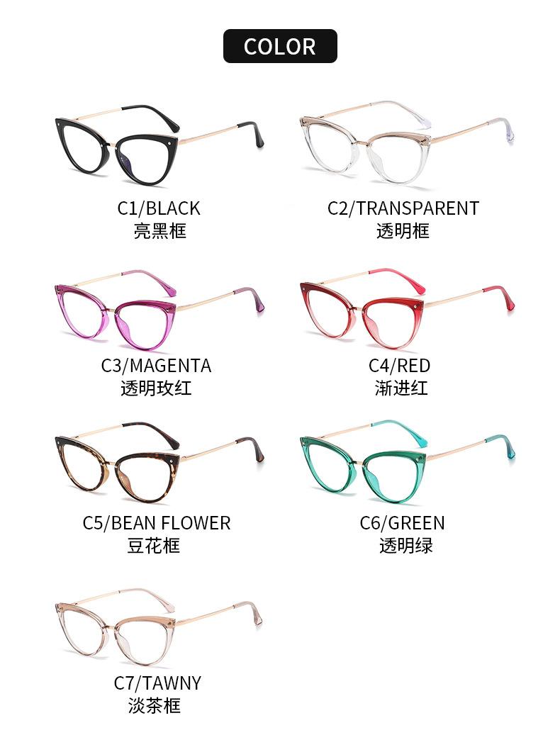 Montura de gafas ojo de gato nueva transfronteriza Moda Exportación Espejo óptico Europeo y Americano Popular en Internet Montura de gafas Patilla de resorte Espejo a juego