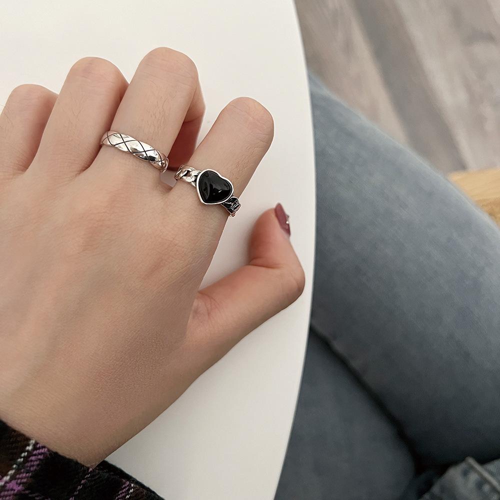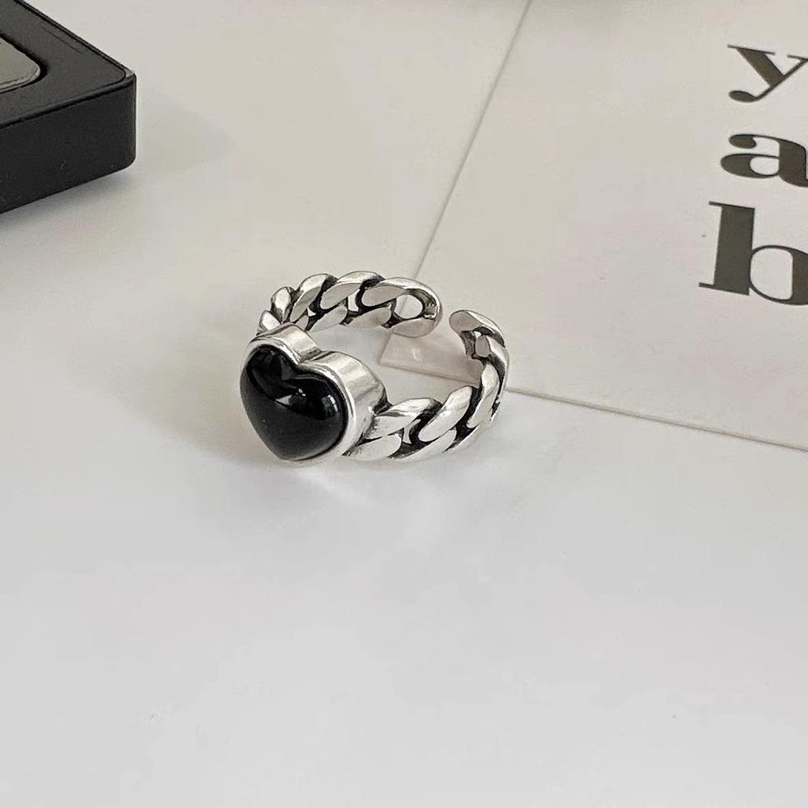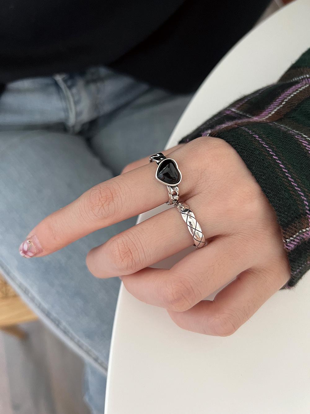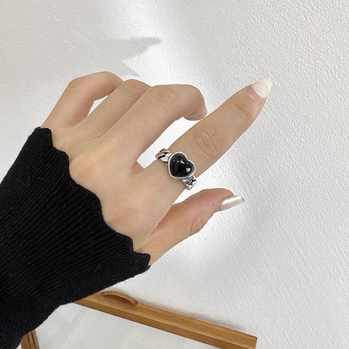 Anillo de amor negro vintage con personalidad para niña, diseño de nicho simple con cadena de corazón de espadas.