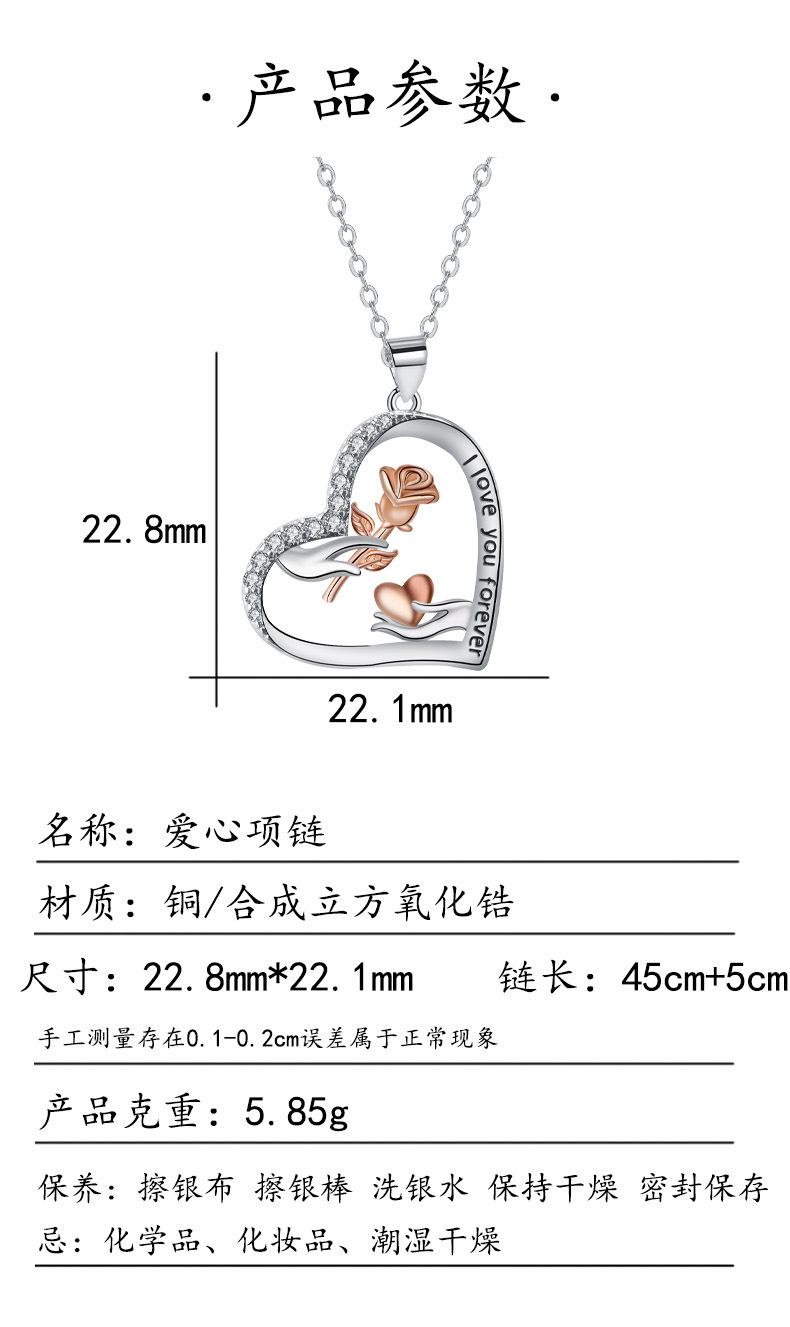 Kaman su collar de rosa de regalo de explosiones mujeres transfronterizo joyería en forma de corazón elegante dulce comercio exterior comercio electrónico para joyería