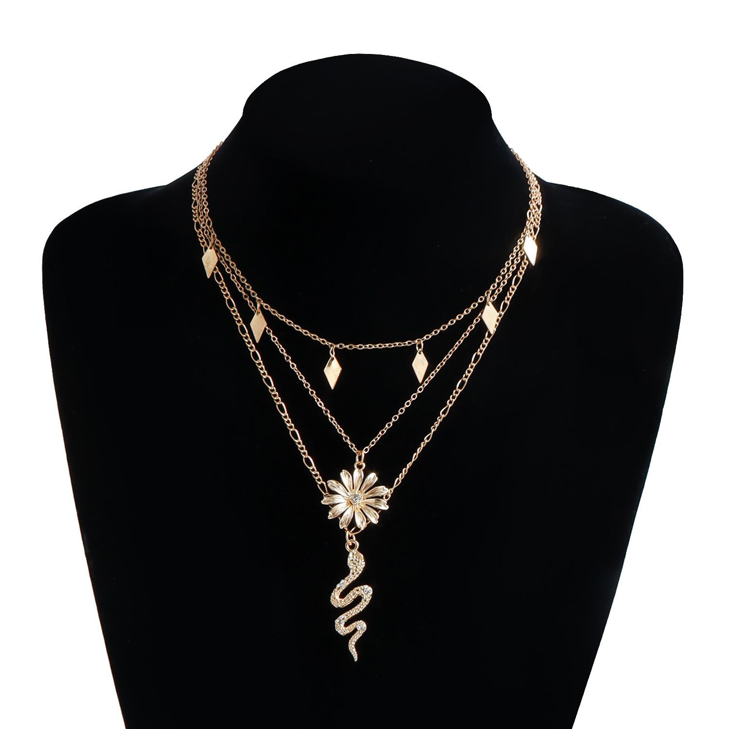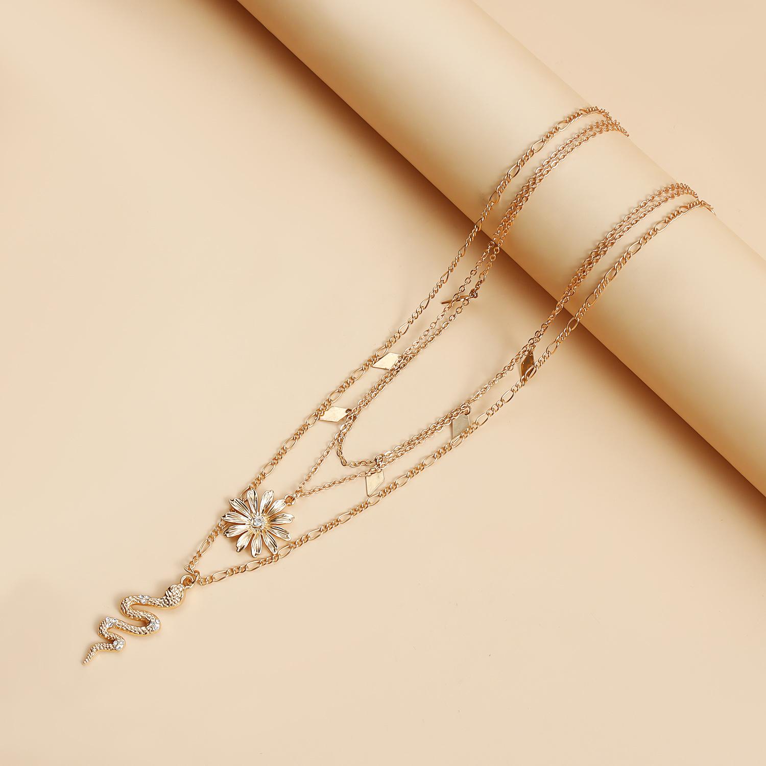 Collar multicapa ligero de lujo con colgante de serpiente, girasol, diamante y cadena de clavícula, joyería transfronteriza europea y americana.
